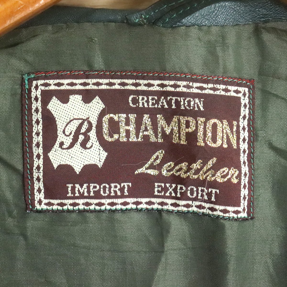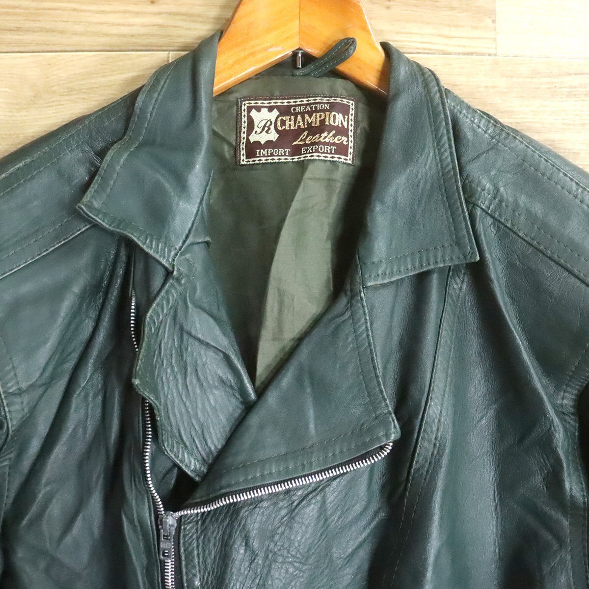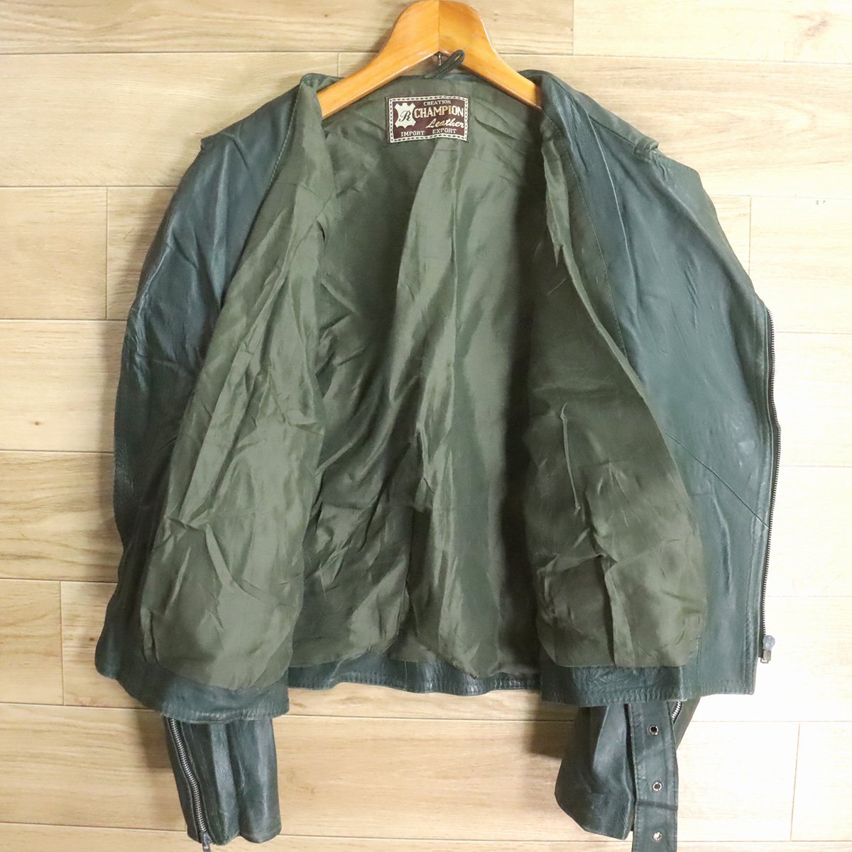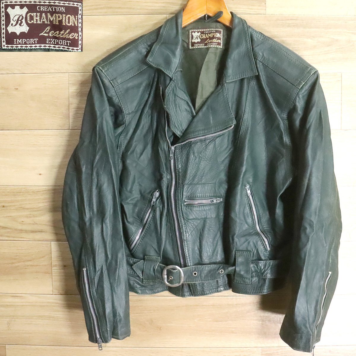 E2S/D11.29-1 CHAMPION Leather ダブルライダース 本革 レザージャケット 革ジャン 皮ジャン グリーン系 ヴィンテージ