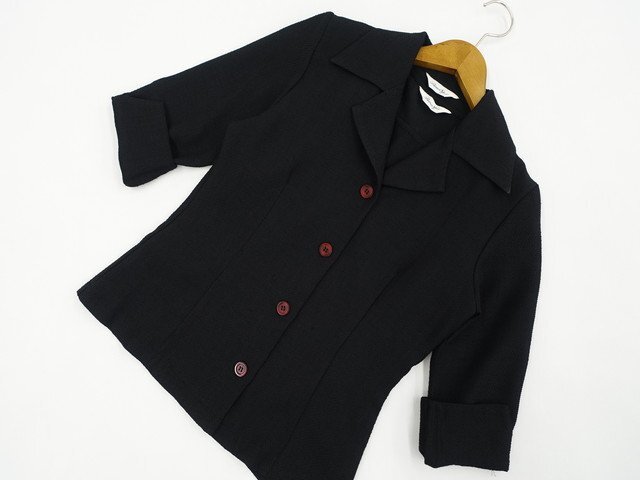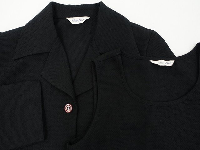 七分袖テーラードジャケット+ノースリーブカットソー アンサンブル上下2点セット M ブラック