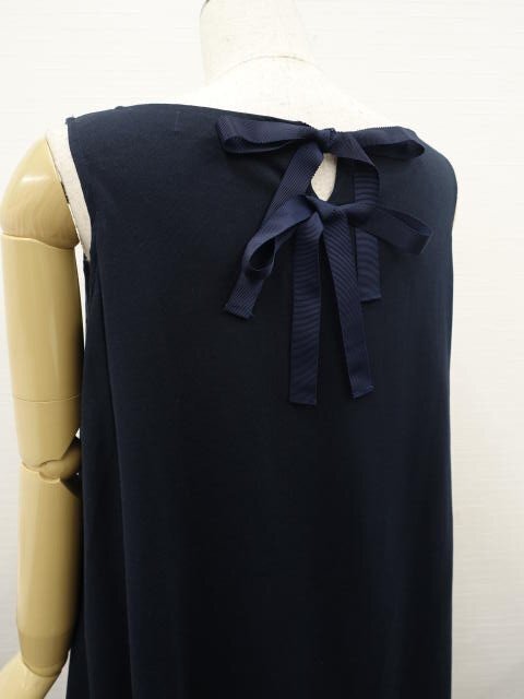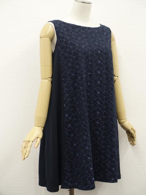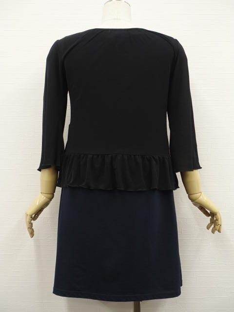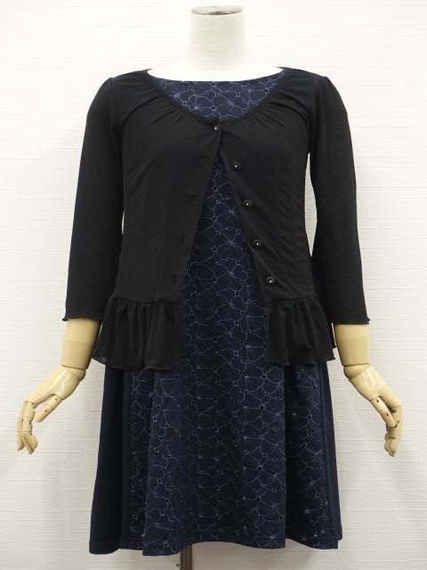 洗える七分袖カーディガン+ひざ丈ノースリーブワンピース コーディネート2点セット M相当 ブラック/ネイビー 花柄刺しゅう きれいめ・ナチュラル系 20代・30代・40代