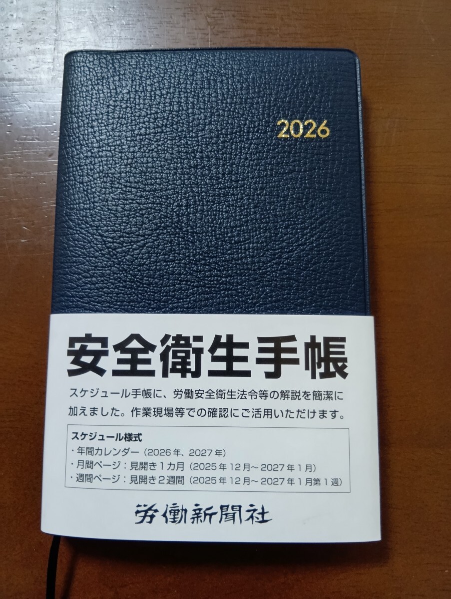 2026年 令和8年★スケジュール手帳 ネイビー 安全衛生手帳★労働新聞社