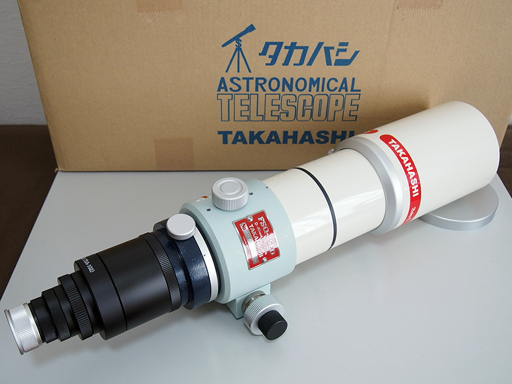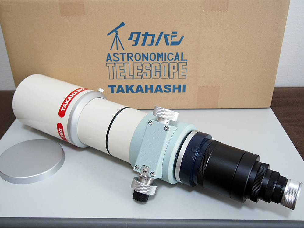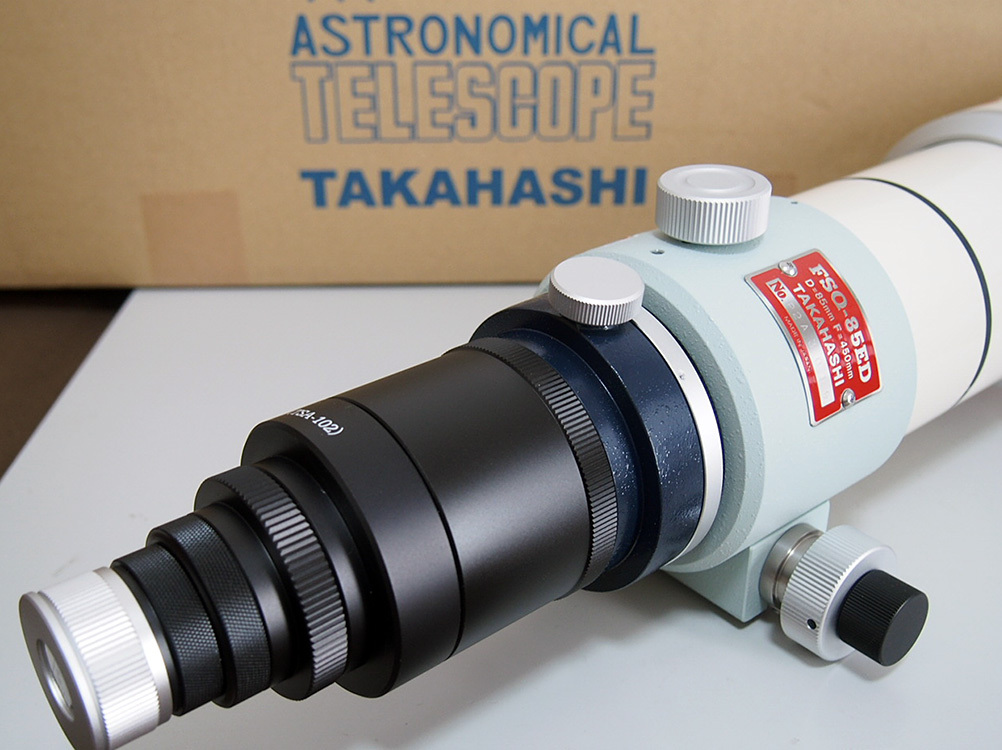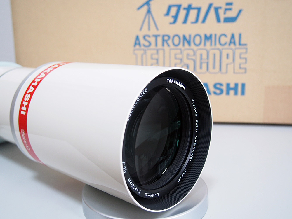 ◆タカハシのFSQ-85EDP、口径85mm、焦点距離450mm、口径比1:5.3、鏡筒径95mm、重さ約3.6㎏の4群4枚EDアポクロマート鏡筒です。
