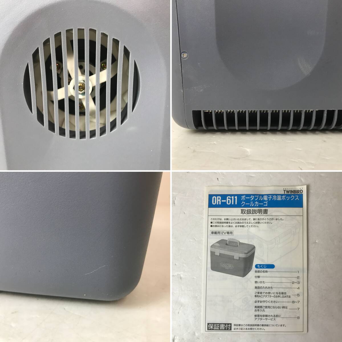 04wy14317●【冷温ボックス】ツインバード クールカーゴ ポータブル電子冷温ボックスOR-611 12V クーラボックス 保温 中古品