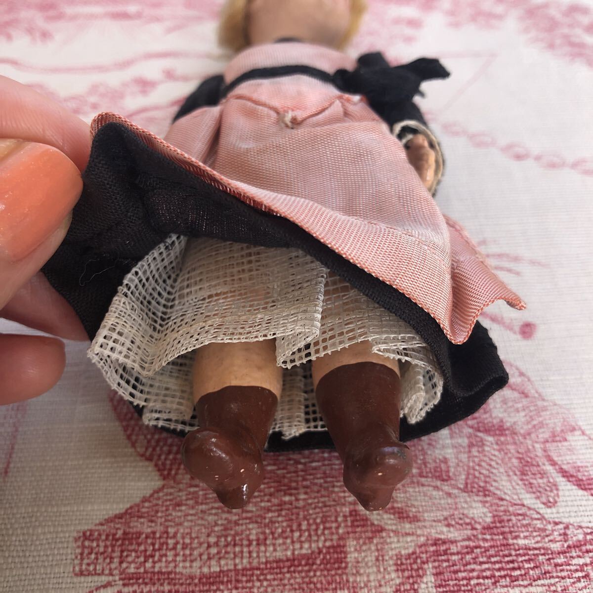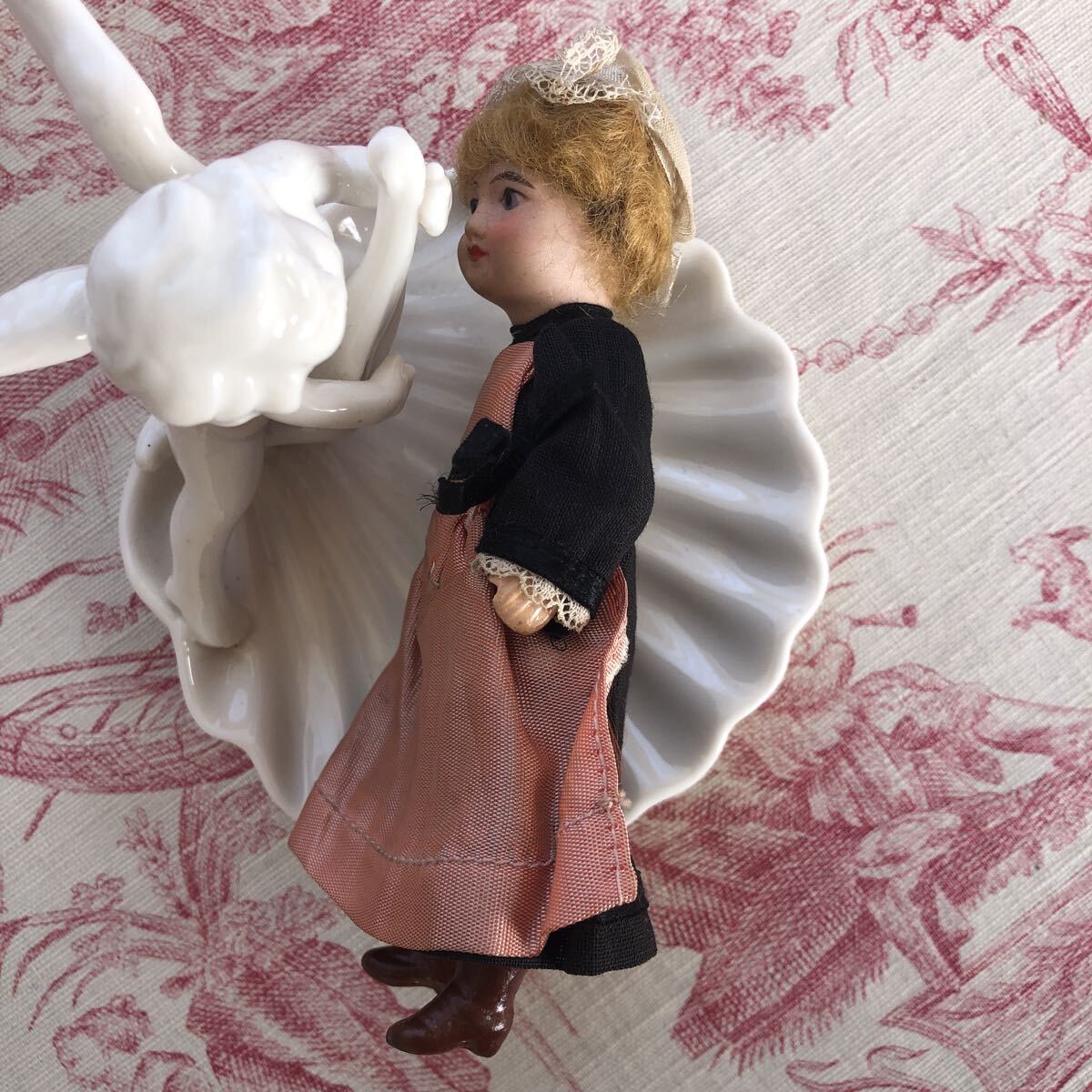 ☆自己紹介欄もご覧ください フランス・パリのアンティークドールやヴィンテージベアなどのコレクターの方からお譲り頂いた物です♪ 豪華!美しいフランス伝統衣装のミニドールです♪ 大人気!コレクターの多いとてもミニョネット、小さなドールです♪ 美しいお顔は陶器製、ブロンドの髪の毛にはレースとボネをかぶっています。茶色いブーツはペイント。 黒とピンクの衣装はオリジナルのままだそうです。 ミニョネットは本国でもコレクターが多く常に探されている為かなり貴重になっています。 1点のみの早い者勝ちです!コレクターの方はこの機会をお見逃しなく♪ 大きさ 身長.約13cm. 手から手の幅.約5cm (多少の誤差はあると思います) 状態. 古い物、ヴィンテージドールです。 経年の汚れ傷シミ変色などございます。 現状にてお渡し、その風合い味わい、アンティーク、ヴィンテージにご理解があり慣れている方へ 不安な方、古い物にご理解の無い方、特に状態などに神経質な方には向きませんので入札しないでください 画像を良く御覧になりご入札ください ☆まとめ買い可能です ご注意:(必ずお読みください)*落札後24時間以内にご連絡、及び3日以内にご入金できる方のみ御入札下さい*新規の方、悪い評価の多い方は購入意志がある事を質問欄に前持って書いてから入札してくださいそれ以外の場合は入札されても削除致します*入札後のキャンセル、変更、クレーム、リターン、質問等は一切受け付けられません。(EX:品物到着後、色や素材やなどがイメージや画像とが思っていたような物と違うなどのクレームで悪い評価を付けた場合、こちらからも付けさせて頂きます)輸送中の事故は紛失などでの返金は致し兼ねます、クレーム、返品は受け付けられません*ノークレームノーリターンです。同梱発送をご希望の場合には必ずメッセージ欄から御知らせ下さい(ご精算はその都度お願い致します)送料がお得になる場合が多いですがならない場合もあります*オークション終了の24時間前迄に入札がない場合
