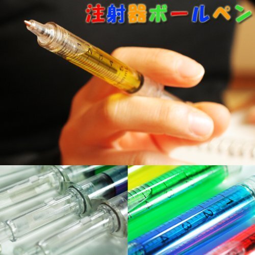 | 人気商品の予感!? ●毒々しい色は何の薬?注射器型ボールペン4本セット |