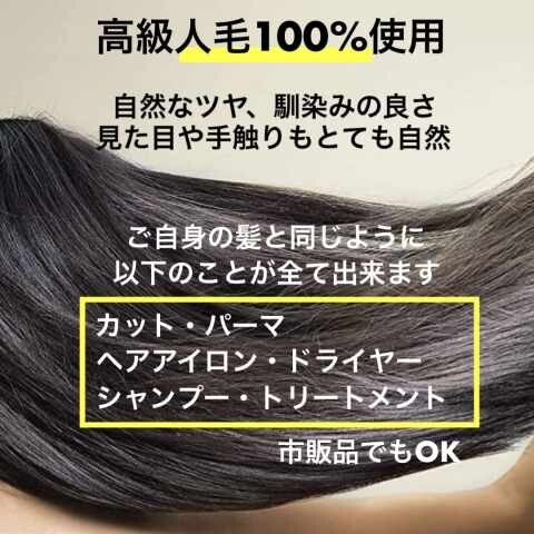 【お客様へお願い】 I・一度脱色後染色しておりますので白髪が数本混じることがございます。発送や梱包の段階で癖がつくことがございます、一度洗髪して頂ければ人毛ですので癖はなくなります。・当画像はヘアオイルにてセットしています。髪を傷めないように、セットしていない状態で梱包・発送致しております。従って、お客様のつむじや髪型に合わせてセットして頂く必要がございます。 ・お客様の髪の状態に合わせた髪のカットや色味の微調整が必要な場合がございます ・染料でカラーリングしている為、匂いがする場合がございます。一度水洗いしてドライヤー等で乾かして頂けますと匂いが取り除かれる場合がございます。 ・人毛でございますので、髪の長さや重量が若干異なる場合がございます。