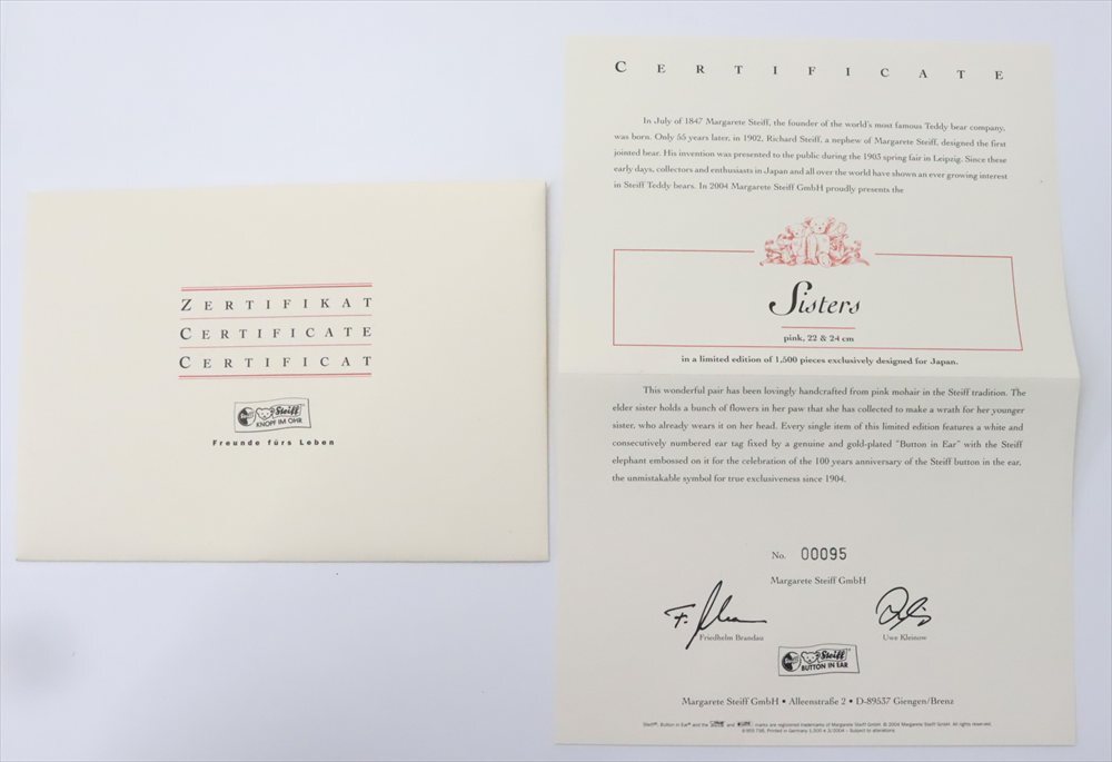 | Steiff シュタイフ テディベア SISTERS 日本限定 | |