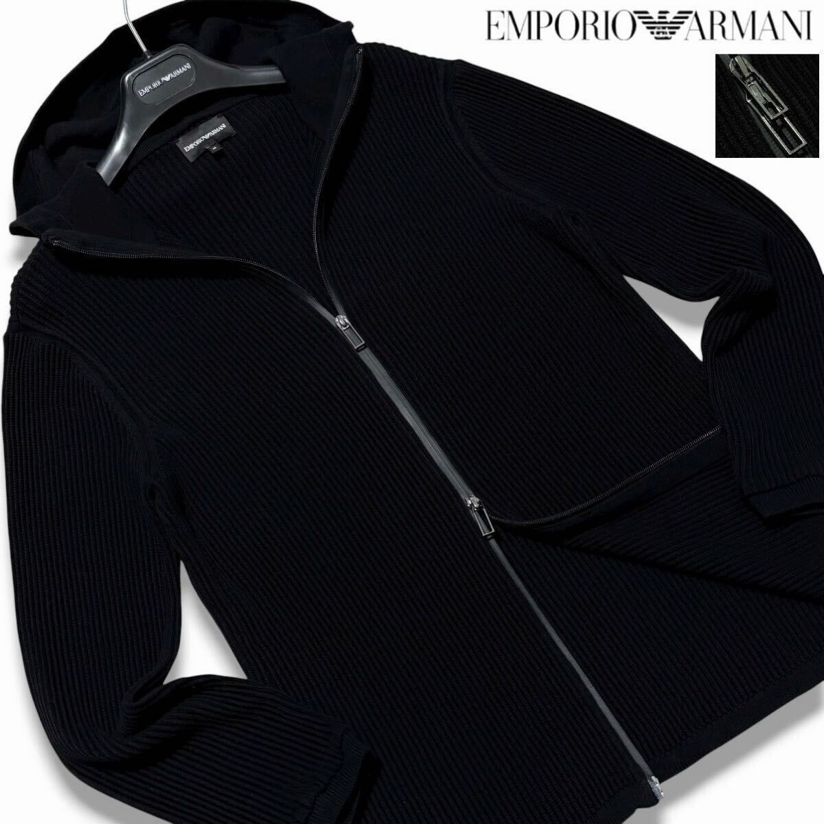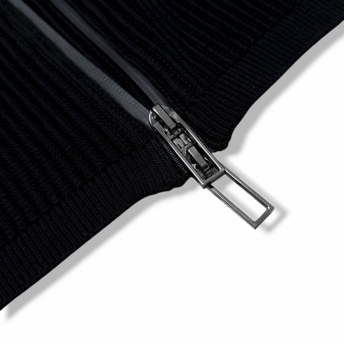 フロントはダブルジップ仕様を採用し、止水ジップによるミニマルで洗練された印象が特徴。ジップを閉じればシャープで都会的に、開ければ抜け感のある大人の色気を演出でき、スタイリングの幅も広がります。ニットパーカーでありながらスポーティさに寄りすぎず、エレガントな佇まいを保っている点もアルマーニらしい魅力です。