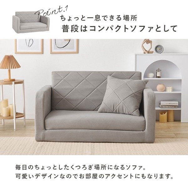 ※現在ご覧の商品ページはアイボリーのご購入ページとなります。 ヤフオクの仕様上単一ページに複数バリエーションを掲載することができませんので、他バリエーションが希望の場合は別ページでご購入お願い致します。 座面を広げると簡易ベッドに。 コンパクトサイズでワンルームにも置きやすく、背もたれのキルティングデザインが可愛いソファベッド。 配達業者を指定いただくことはできません。 北海道/沖縄/離島のお届けに別途中継料金が発生します。 ※別途送料が発生する場合は後ほどご連絡させていただきます。 当店は正規店です。 タイミングによっては在庫切れの場合があります。
