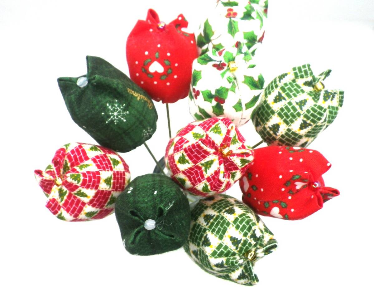 クリスマス柄36 クリスマスカラー 布花 ハンドメイド 10本組