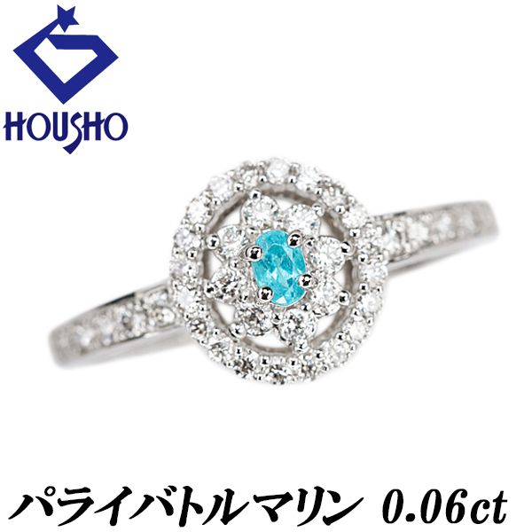 | 商品名:パライバトルマリン リング 0.06ct ダイヤモンド Pt950 花 フラワー 植物 ボタニカル 透かし | |