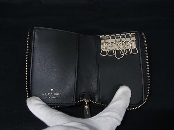■極美品■ kate spade ケイトスペード K9351 レザー 6連 キーケース 鍵入れ レディース ベージュ系×ブラック系 DK8637