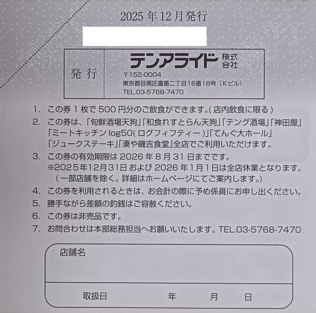 テンアライド 天狗 株主優待券 12,000円分 有効期限2026年8月31日<送料無料>