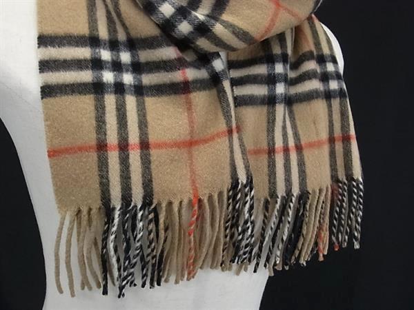 1円 ■美品■ Burberrys バーバリーズ ノバチェック カシミヤ100% フリンジ マフラー ストール レディース ベージュ系 FN9612
