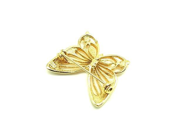 ■美品■ HANAE MORI ハナエモリ ラインストーン 蝶 ピンブローチ ピンバッジ アクセサリー レディース ゴールド系 DI6484