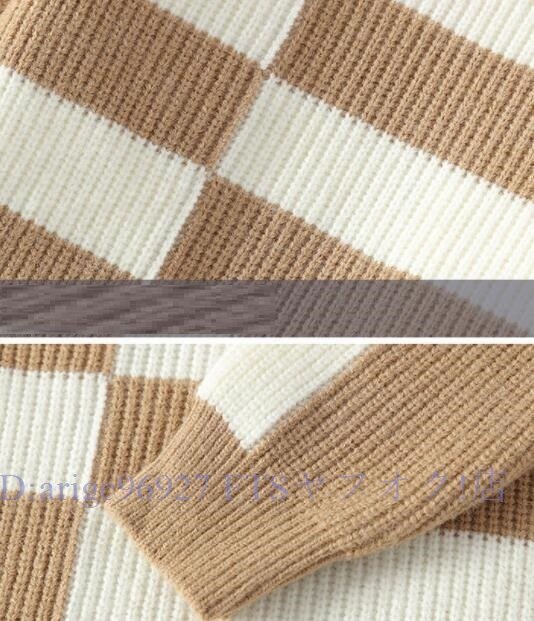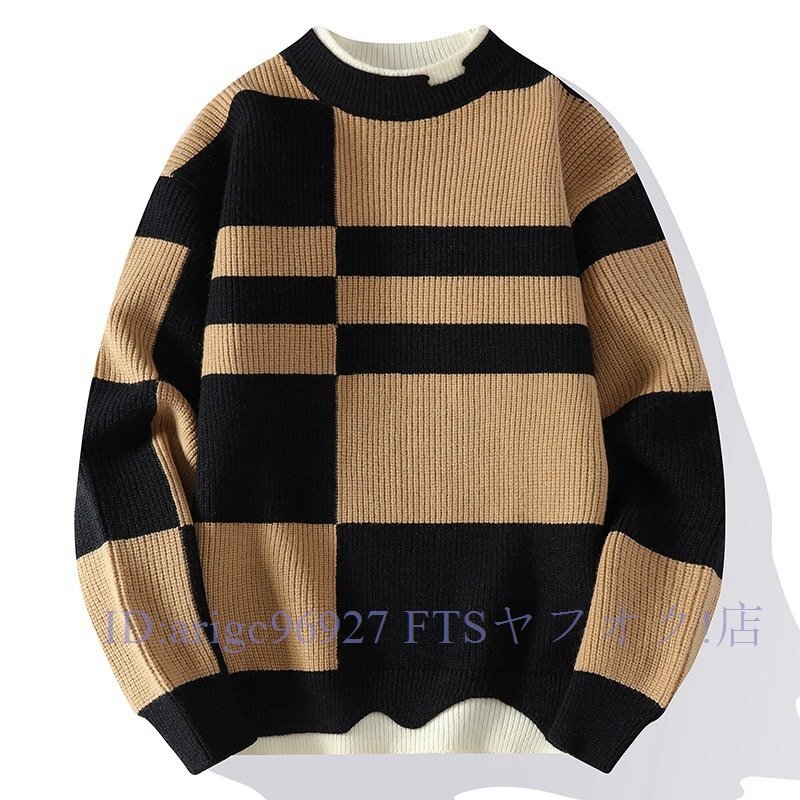 ★新品ウール混 クルーネック ニットセーター メンズ 秋冬 配色 編み 厚手 暖かい 長袖 プルオーバー ブラック * ホワイト