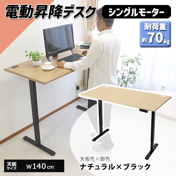 | 商品名 | 送料無料 昇降デスク 電動 エコノミーモデル PSE適合 140cm 1400mm 耐荷重約70kg(脚部) スタンディングデスク 上下昇降 デスク 高さ調整 エルゴノミクス 昇降式デスク 昇降テーブル 電動デスク シングルモーター オフィス セーフティ メモリー 軽量 9f |