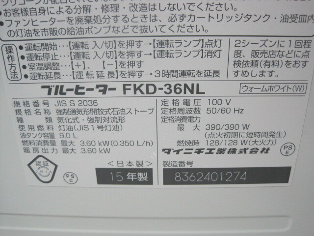 | 12-345 7◇Dainichi/ダイニチ ブルーヒーター/石油ファンヒーター FKD-36NL 15年製 7◇ | |