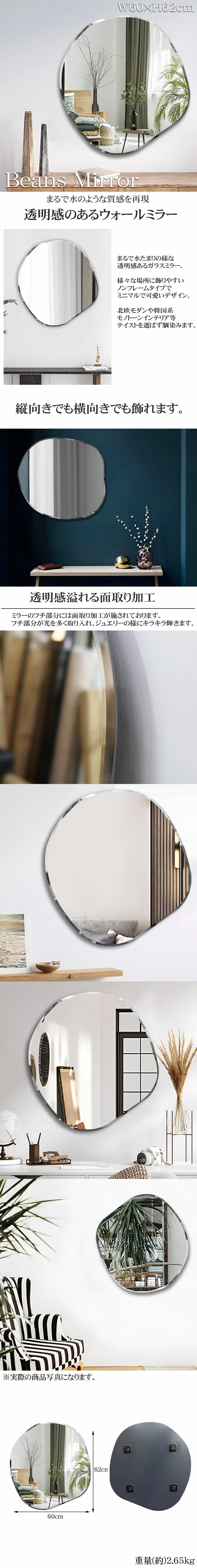 ![]() まるで水のような透明感あるガラスミラー。 様々な場所に飾りやすいノンフレームタイプ。 鏡の縁を面取り加工することでより一層光を反射し、美しいデザイン。 日本でも流行の韓国風インテリアの中でも特に根強い人気を誇る『ウェーブミラー』 波線状にカッティングされた独特なフォルムが目を引き、 ミラーとしてお使いいただくのはもちろん、オブジェとしても最適です。 北欧モダンや韓国系、モノトーンインテリア等テイストを選ばず馴染みます。 たった一つ取り入れるだけでシンボルの様に空間の雰囲気を上質にドレスアップ! 縦向きにも横向きにも、お好きな方向で飾れる♪ お好きな向きで吊り掛け出来ます! お出かけ前のコーディネートチェックに最適できれいに、しっかりと映ります。 デザイン性の高い空間作りに最適! お部屋をオシャレに彩ってみてはいかがでしょう? ■透明度の高いミラー 通常のミラーより光透過率が高く不純物も入っていないのでより鮮明に写すことができます。 ■様々なシーンで活躍してくれます。 ショップ、ご自宅、美容院、ホテルなど様々なシーンで活躍してくれます。 サイズ(約):高さ62cm、幅60cm 重さ(約):2.65kg ●注意事項 ・取り付けに必要な工具類は付属しておりません。 ※一つ一つ手作業によって製造されている為、イメージ写真と形状が異なる場合がございます。 ・ミラー、フレーム部分に梱包材が付着している場合がございます。 ・商品のカラーにつきましては、お使いのモニターの設定などによって実物と異なる場合があります。 ・この商品は海外からの輸入品の為予告なく仕様など変更する場合が御座います。 ・輸入品の為、傷や塗装の剥がれ、多少の歪み等ある場合がございますのでご了承願います。 ・この商品は専用の箱がない為、簡易梱包、エアークッションでの発送となります ・万が一、当製品を使用した事で損害などが発生いたしましても責任は負いかねますのでご了承下さい。 |