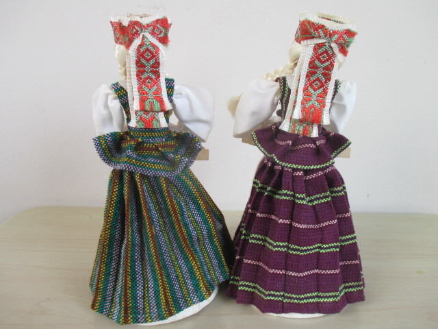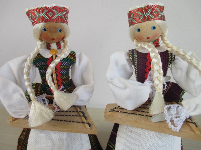 リトアニア ヴィンテージ カンクレスを弾く民族衣装の女性人形 2体 旧ソビエト雑貨 バルト三国 刺繍 レース 民族楽器