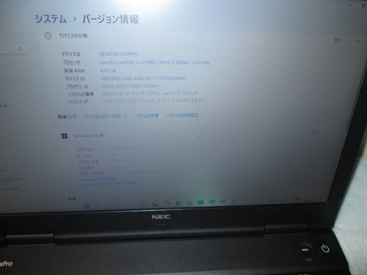 NEc VersaPro VK25LA-N  Windows11 Pro 24H2 64bit  Intel Core i3-4100M 2.50GHz  4GB SSD:128GB  15.6型  ブラック系  Li-Office  AC付