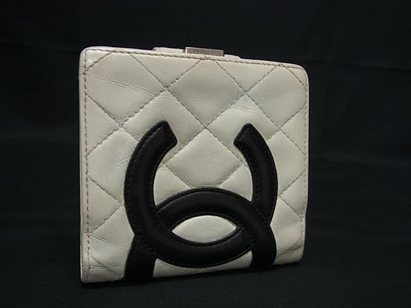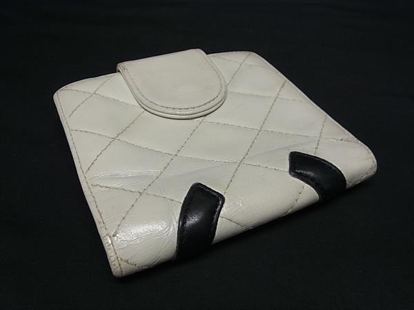 1円 CHANEL シャネル ココマーク マトラッセ カンボンライン レザー 二つ折り 財布 ウォレット アイボリー系×ブラック系 FN4651