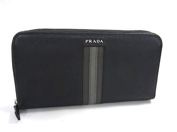 1円 ■美品■ PRADA プラダ レザー ラウンドファスナー 長財布 ウォレット 札入れ 小銭入れ カード入れ メンズ ブラック系 FJ8740