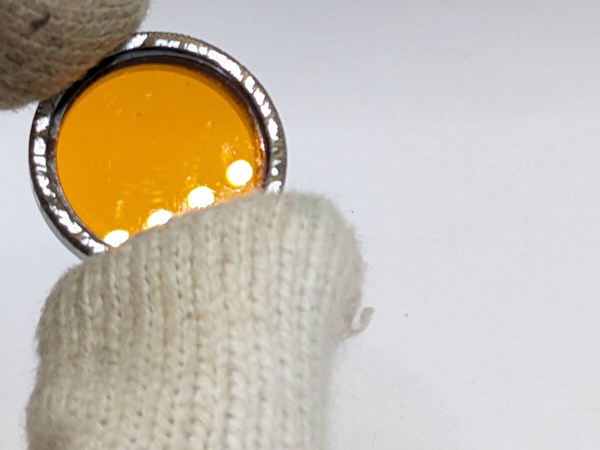 強い光に当てると、奥側のレンズに薄いカビあります。