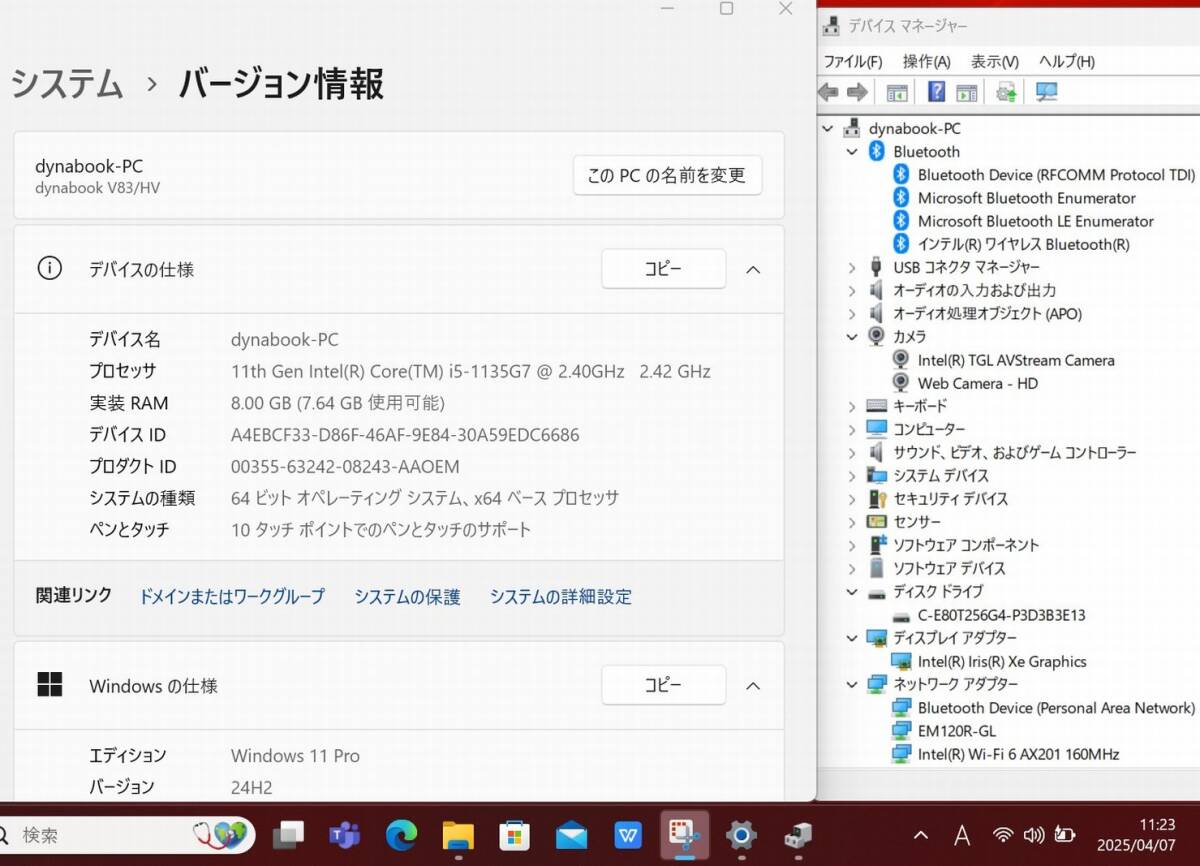 | 型番: TOSHIBA dynabook V83HV 2-in-1 |