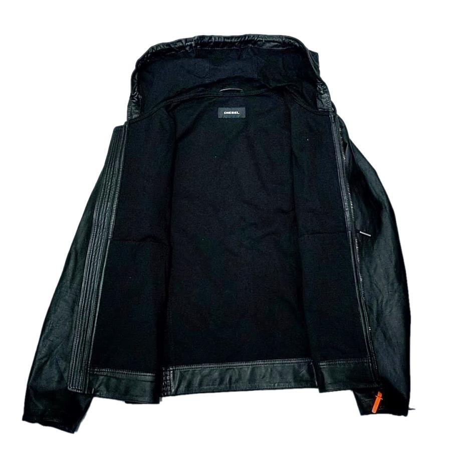 送料無料 超美品 ディーゼル DIESEL レザージャケット パーカー ブルゾン アウター シープスキン 羊革 XL 黒 メンズ