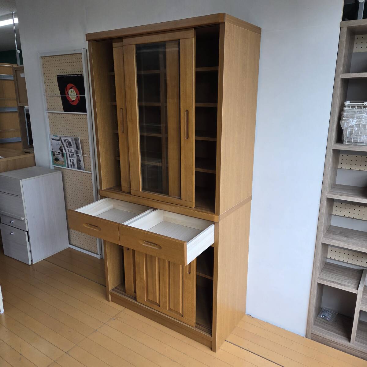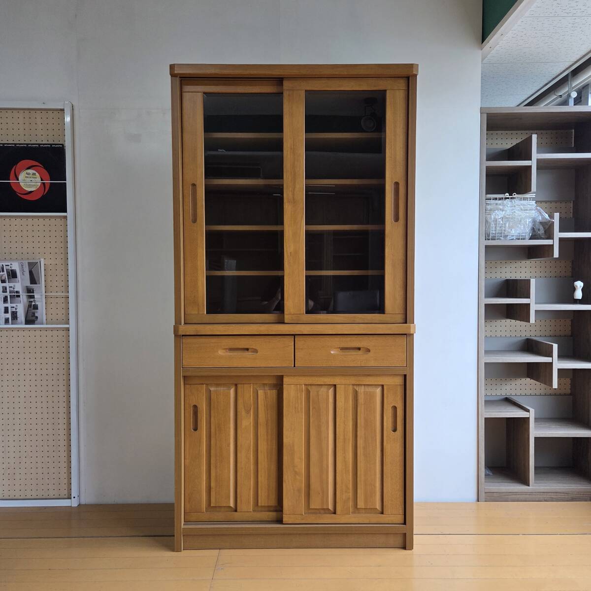 未使用 美品 サンプル品 食器棚 幅90.5 大量収納 引戸 引き出し ナチュラル ヴィンテージ 高さ180.5 キッチンボード スリム ガラス