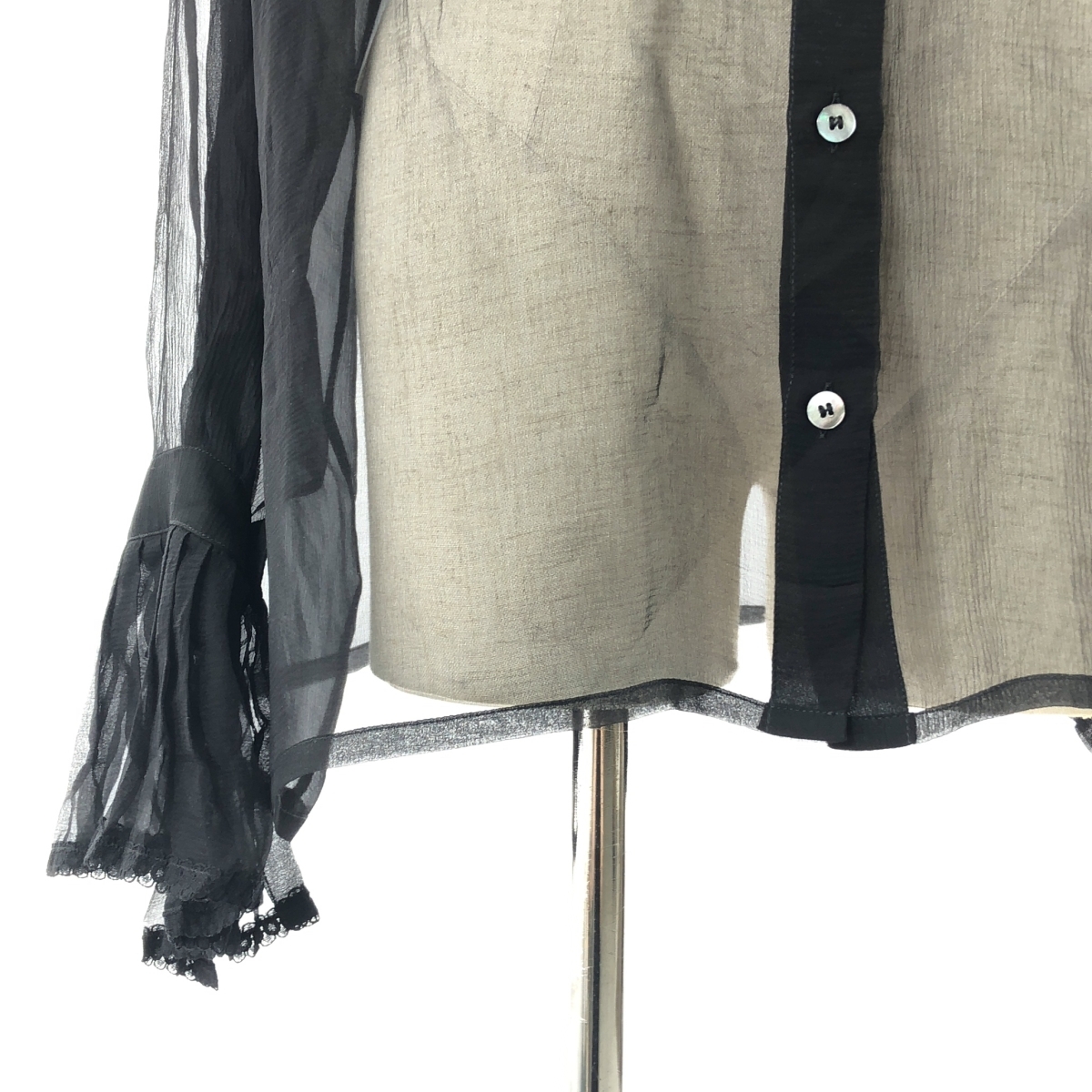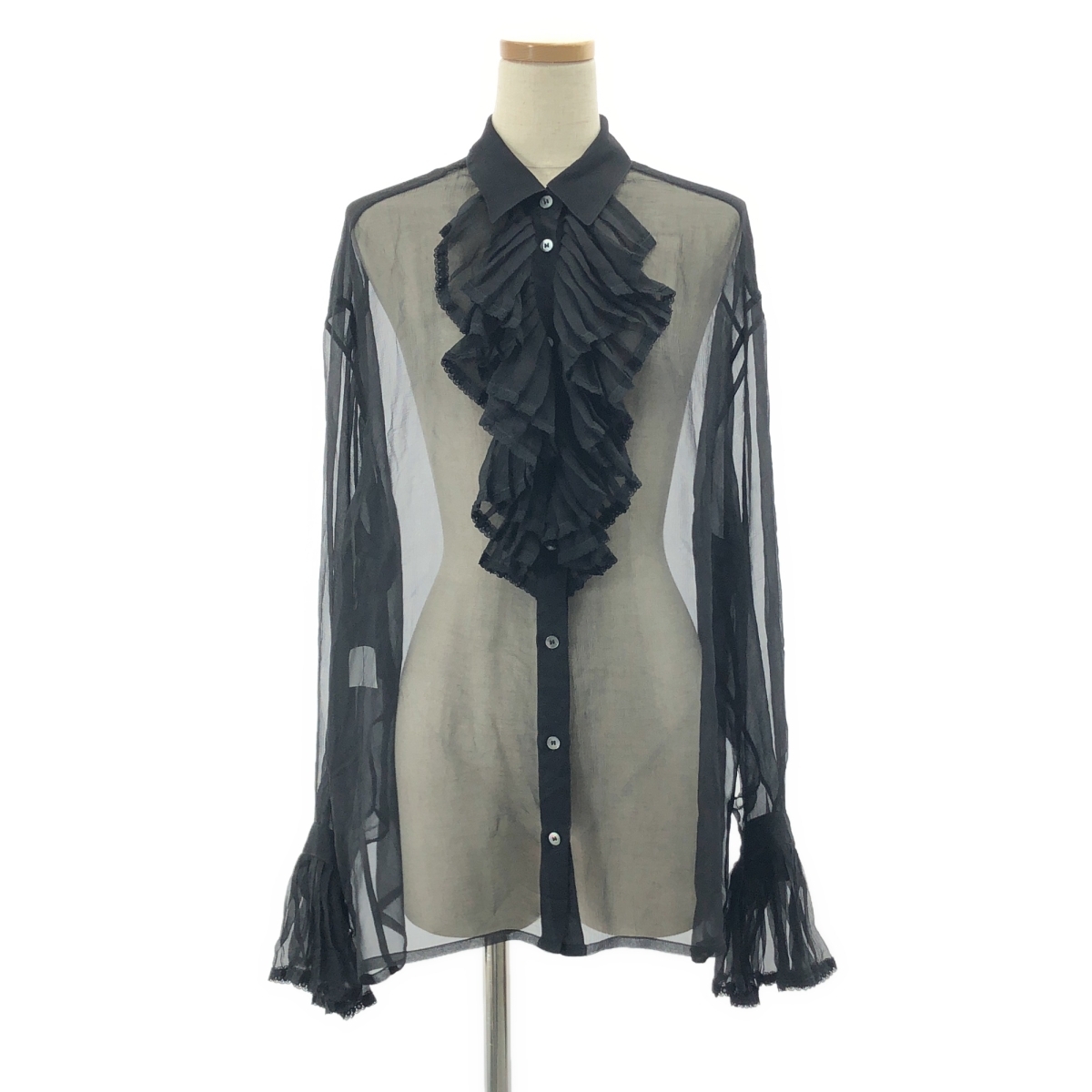 Maison Margiela / メゾンマルジェラ | 白タグ シアー フリル ブラウス | 40 | ブラック | レディース