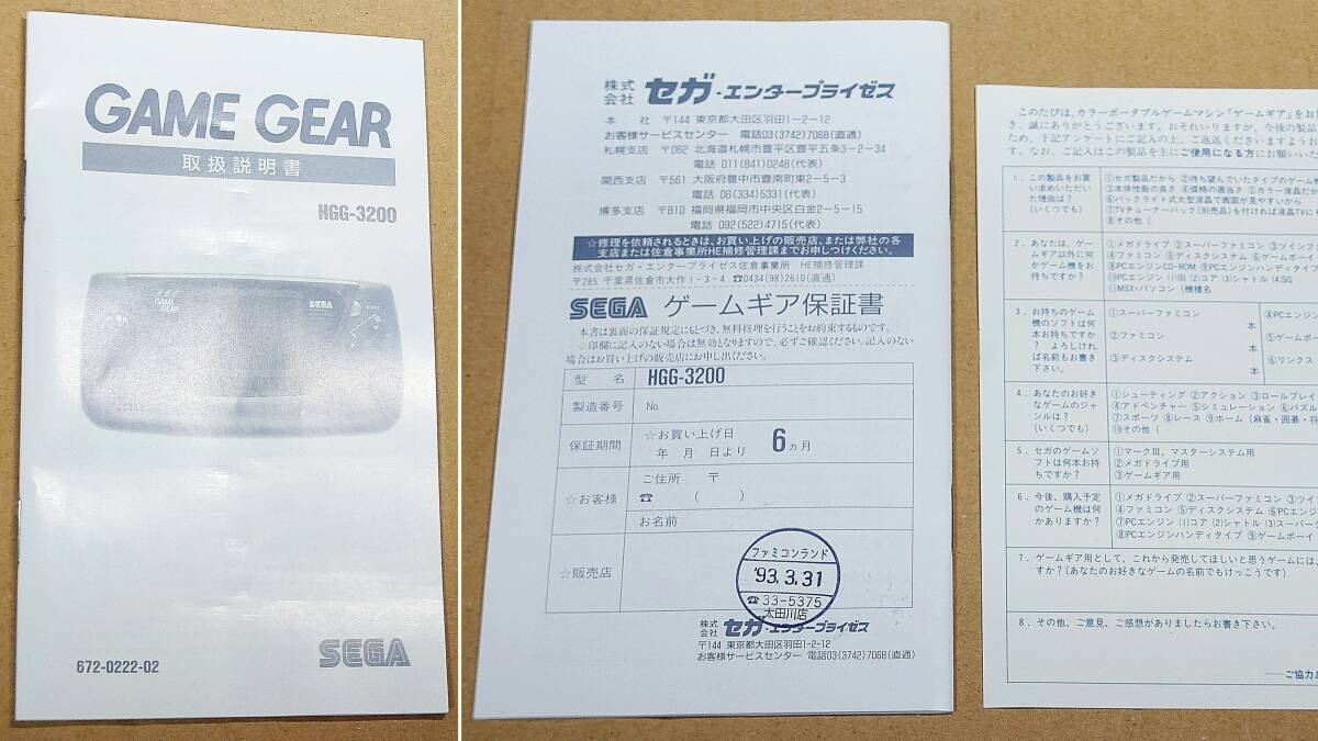 セガ SEGA ゲームギア 本体 (HGG-3210) 箱・説明書・ハガキ・ストラップ付き / TVチューナー付き / MEGA DRIVE 通電OK