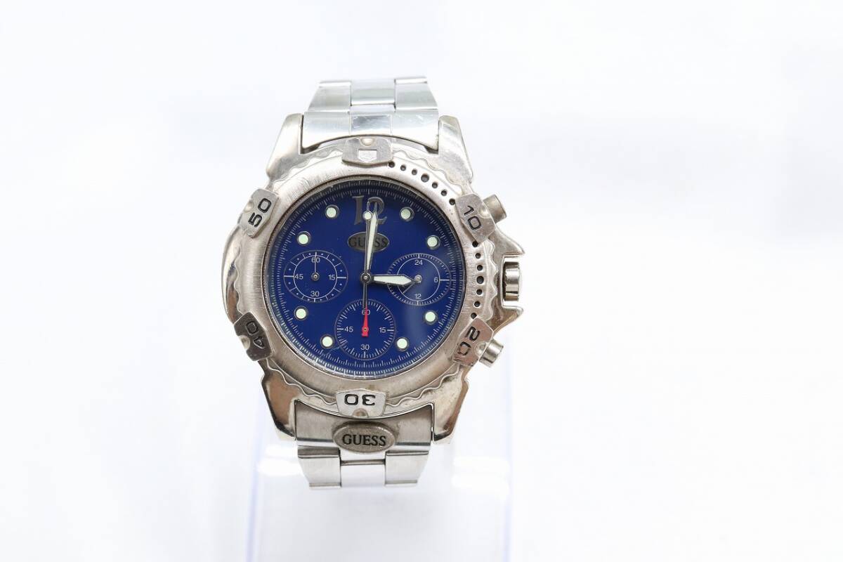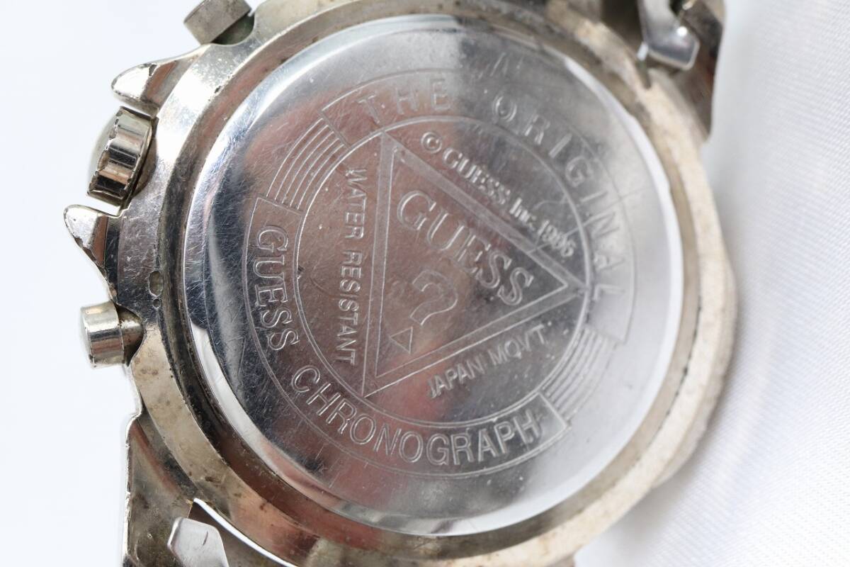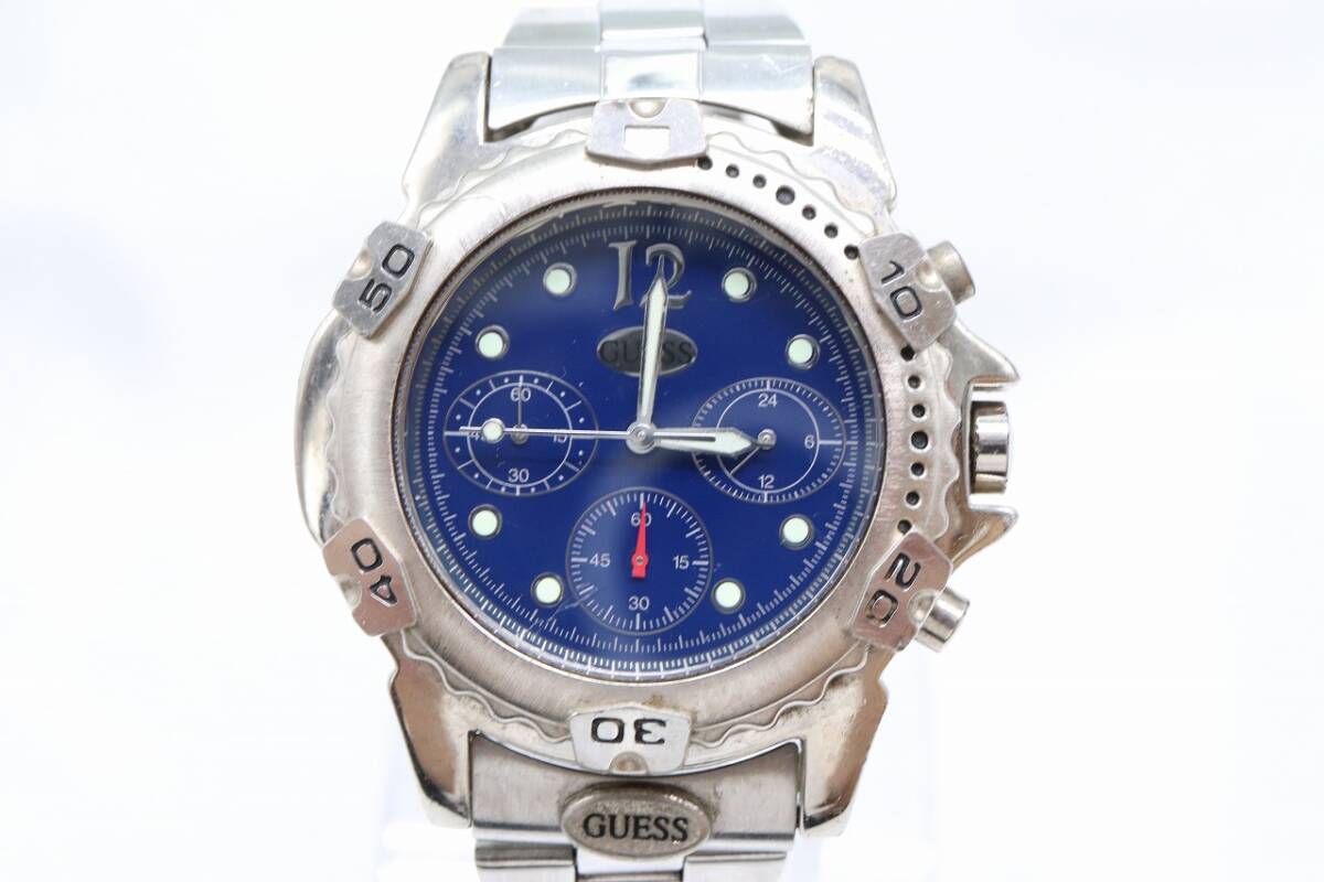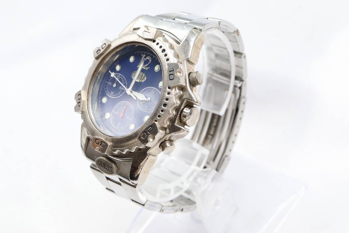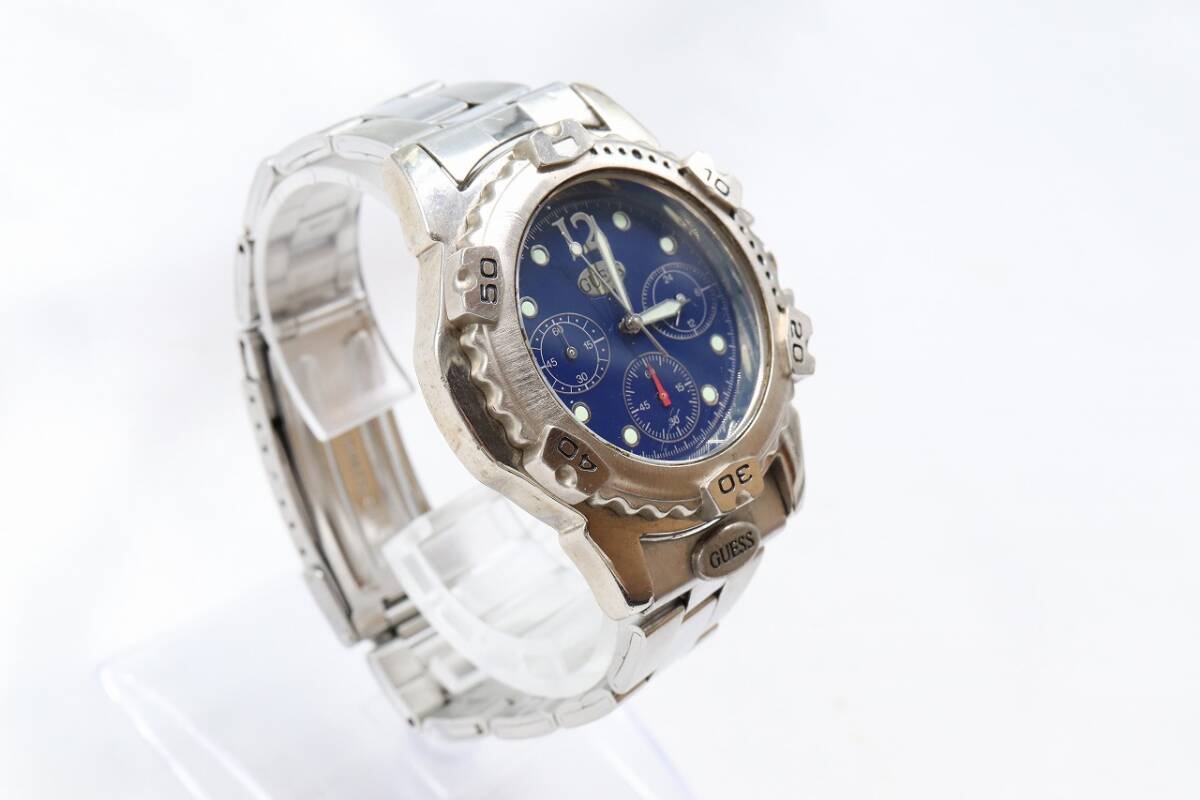 【W257-32】動作品 電池交換済 GUESS ゲス クロノグラフ 回転ベゼル 腕時計 メンズ【送料全国一律185円】