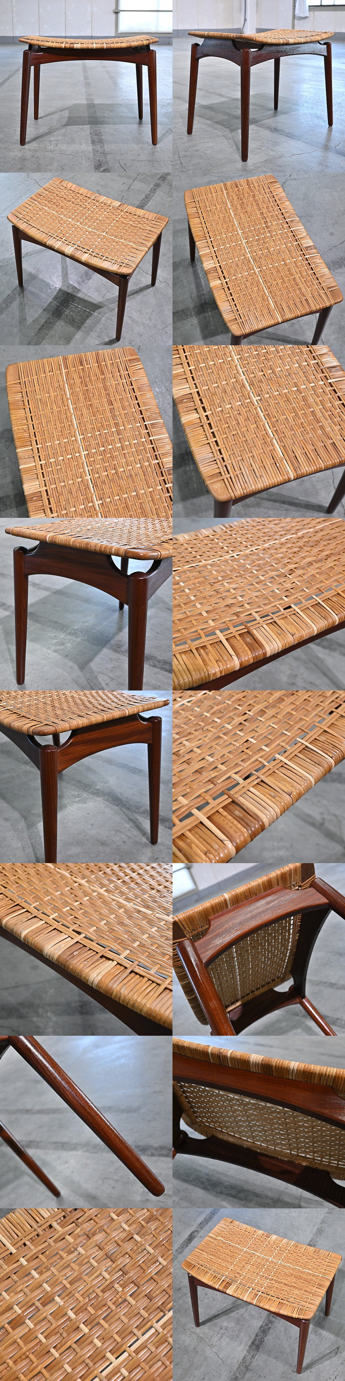 北欧デンマーク製 Olholm Mobelfabrik社 スツール チーク無垢材 ラタン 椅子 腰掛け 籐編み チェア オルホルム モーベルファブリック
