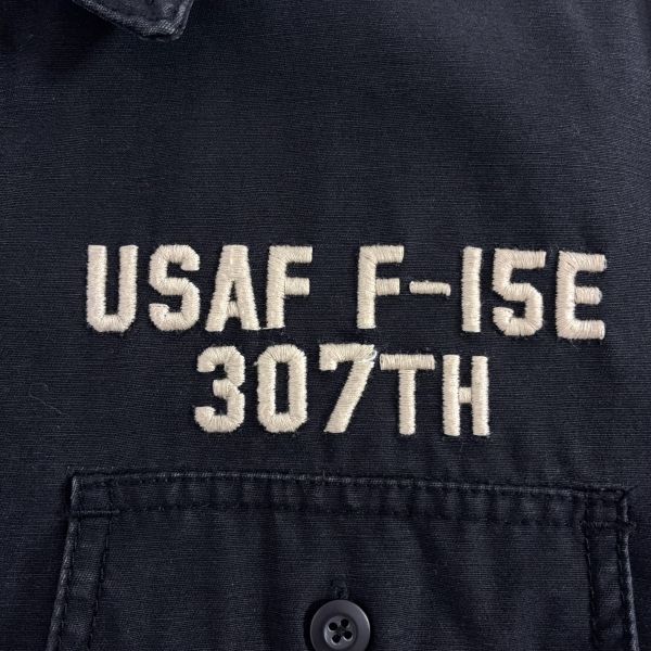 【レア】HOUSTON ヒューストン U.S.AIR FORCE ミリタリー 長袖シャツ 黒 フェード F-15E 刺繍 軍物
