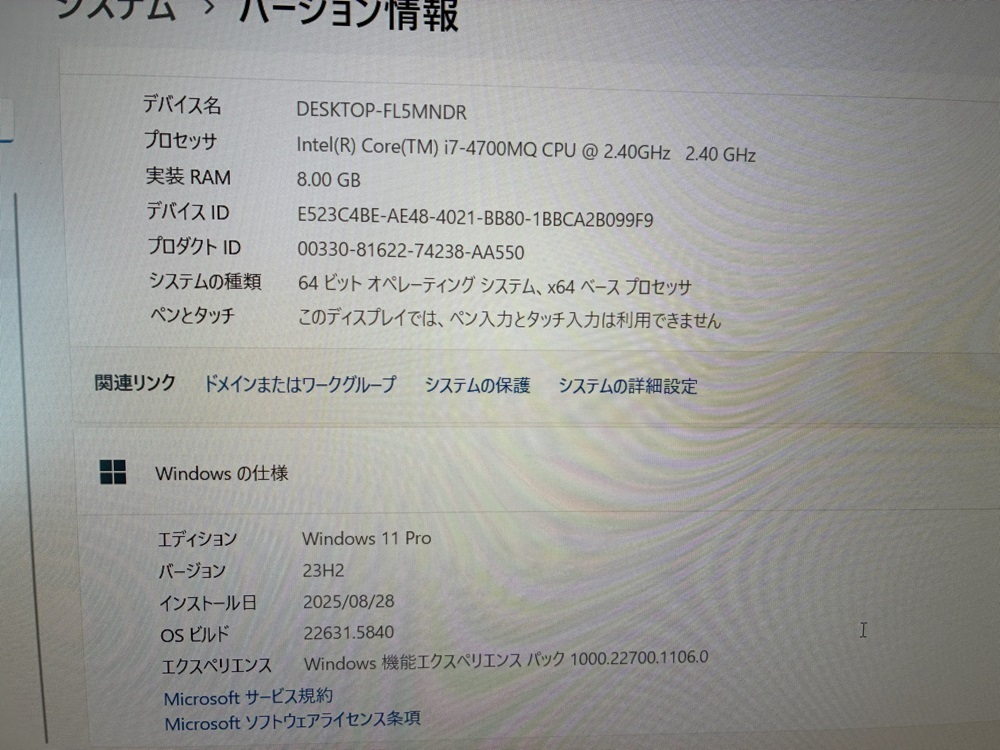 このパソコンは、4コア8スレッドのターボモードCPU搭載していますので、まだまだ、使えるPCです。