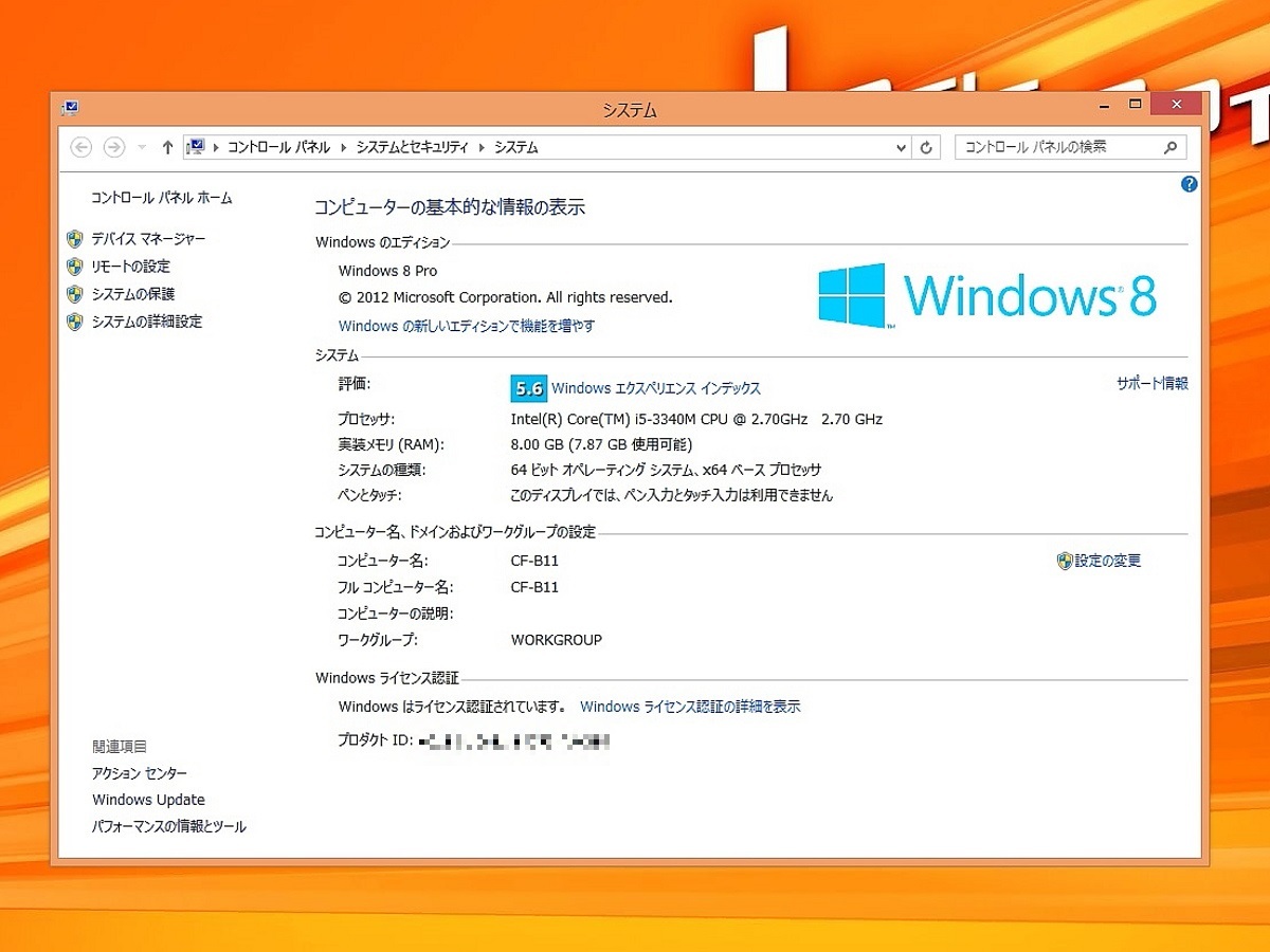 | 商品説明 | パナソニック「Panasonic Let's note B11」 CF-B11AWDCS デスクワークを持ち出せる大画面・高解像度モバイル 第3世代 標準電圧版 インテル Core i5-3340M プロセッサー搭載 メモリーを8GB(4GBx2)に増量で高速処理がさらに快適 OSはWindows8ですが、64bit版を再インストールしていますので、 増量したメモリもすべて利用可能になっています。 Windows8 Pro 64ビット版を再インストール済ですので、 すぐにお使いいただけます。 累積使用時間は12680時間となっています。 【仕様】 OSWindows8 Pro 64ビット 正規版 プロセッサー インテル Core i5-3340M (2コア4スレッド/2.70GHz) メモリー 8GB(オンボード4GB+増設4GB 空きスロット無し) 表示方式 15.6型(16:9)TFTカラー液晶 Full HD(1920×1080ドット) ストレージ HDD 320GB 通信機能IEEE802.11a/b/g/n無線LAN モニタポートミニD-Sub15ピン×1、HDMI×1 USBポートUSB3.0×2(左側面)、USB2.0×1(右側面) 外形寸法 幅370.8mm×奥行229mmmm×高さ31.4mm 質量 約1.895kg ■状 態■ Windows8 Pro 正規版を再インストールしています。(ライセンス認証済) デジタルライセンス認証ですので、OSのシールのみ貼付されています。 デバイスマネージャーには不明なデバイスは無く、正常に稼動しております。 HDD内にWindows8 Proのリカバリ領域があります。 リカバリ領域よりOSの再インストール可能です。 ※リカバリディスクは付属しません。 BIOS起動、変更できました。 キーボードの入力できました。 初期設定時に使用したキーには反応しないキーはありませんでしたが、 全てのキーは確認していません。 複数のキートップに変色(黄ばみ)が発生しています。 タッチパッドの操作できました。 クリックボタンも使用可能です。 無線LANにてアクセスポイントの受信できました。 ※サポート終了OSのため、インターネット接続は未確認です。 DVDドライブの読込みできました。 ※書込みは未確認です。 バッテリーは充電・起動可能ですが、バッテリーのみでの駆動時間は計っていません。 商品撮影時、99%充電残量で4時間59分使用可能と出ていました。 【バッテリ】 動作確認時点でのバッテリー情報(参考): ・完全充電時の容量:43380mWh ・積算充電指数:291 ※上記バッテリー情報は、使用時間・バッテリー性能を保証するものではございません。 ※ACアダプターは付属しませんので、落札者様で御用意下さい。 簡単に清掃しておりますが、筐体にキズ・汚れなどがございます。 液晶ベゼルの上辺部に小さいひび割れが2カ所あります。 天板にシールの剥がし跡があります。 目視で確認したところでは、液晶にライン抜けなどの症状は無いようです。 画面等に使用上、支障の無い程度の傷がある場合がございます。 ※Officeソフトはインストールされていません。 ※プリインストールソフトのユーザー登録は未確認ですので、不問にてお願いします。 ※即決落札の場合でも、発送は通常終了の翌日月曜日以降になります。 ※発送までの取り置きは可能ですが、早期発送はできませんので、御注意下さい。 ※現状では動作に問題ないようですが、古い製品ですので、商品到着時点で 起動しない等の初期不良を除き、ノークレーム・ノーリターンと致します。 使用開始後に発生した動作不良には対応できませんので、御了承下さい。 ■この商品に対する注意事項 液晶のドット抜け及び液晶の色むらは、液晶の構造上起こる場合がございます。 初期不良対象外になり、交換致しかねますので、予めご了承ください。 ■付属品 無し ■発送方法■ 佐川急便で発送いたします。 ■お支払い方法■ ヤフー簡単決済 出来るだけ良い物を、出来るだけ良心的な価格で 提供出来ますよう、これからも努力して参ります。 アイテムはドシドシ更新して参りますので、気に入って頂けましたら、 当方のIDをオークションアラートに追加して頂けますと幸いでございます。 最後まで御覧頂きましてありがとうございました。  | |