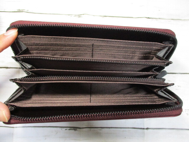 大きく開くラウンドファスナータイプで、カード入れ、ポケットも多く大容量で収納力抜群です。