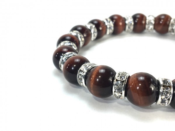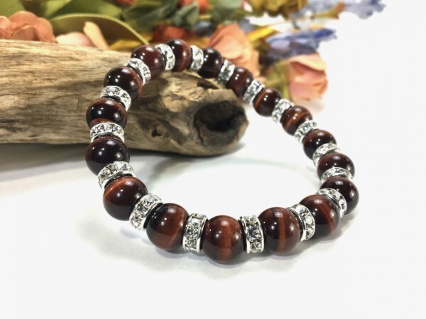 こちらは、10mm玉のレッドタイガーアイを使用したパワーストーンブレスレットです。間にはロンデルを挟み高級感あるブレスレットに仕上げています。石大きさは腕にも馴染みやすいように10mm玉を使用して、サイズは内径約18cmです。(サイズ調節も無料で承っています。サイズ変更の場合は落札後、取引ナビにてご一報くださいませ。) 数に限りがございますので気になる方はお早めにどうぞ。