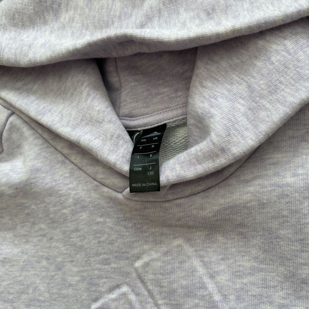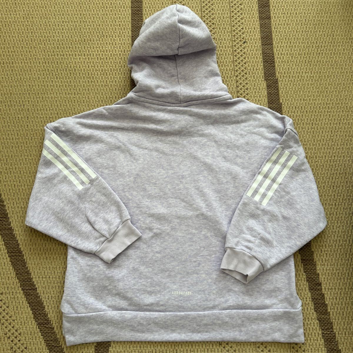 ☆着用回数1回のアディダスのパーカー サイズは130サイズです。色はうすいパープルです。