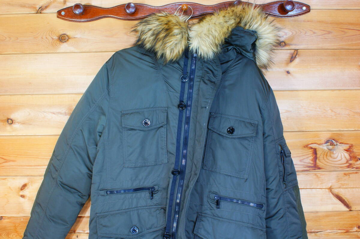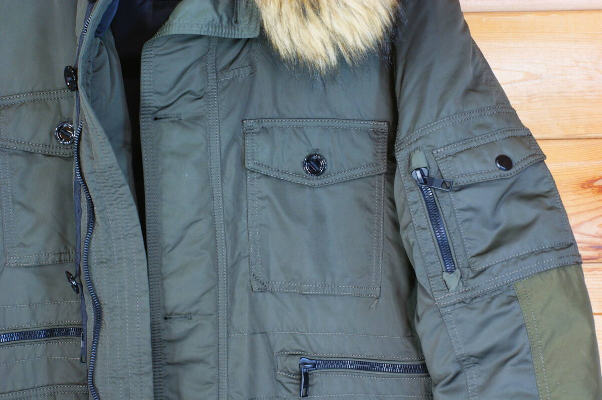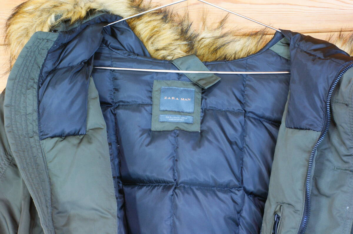美品カッコイZARA MANダウンコート XLの出品になります。濃いグリーン色。チャックボタンは全てOK,