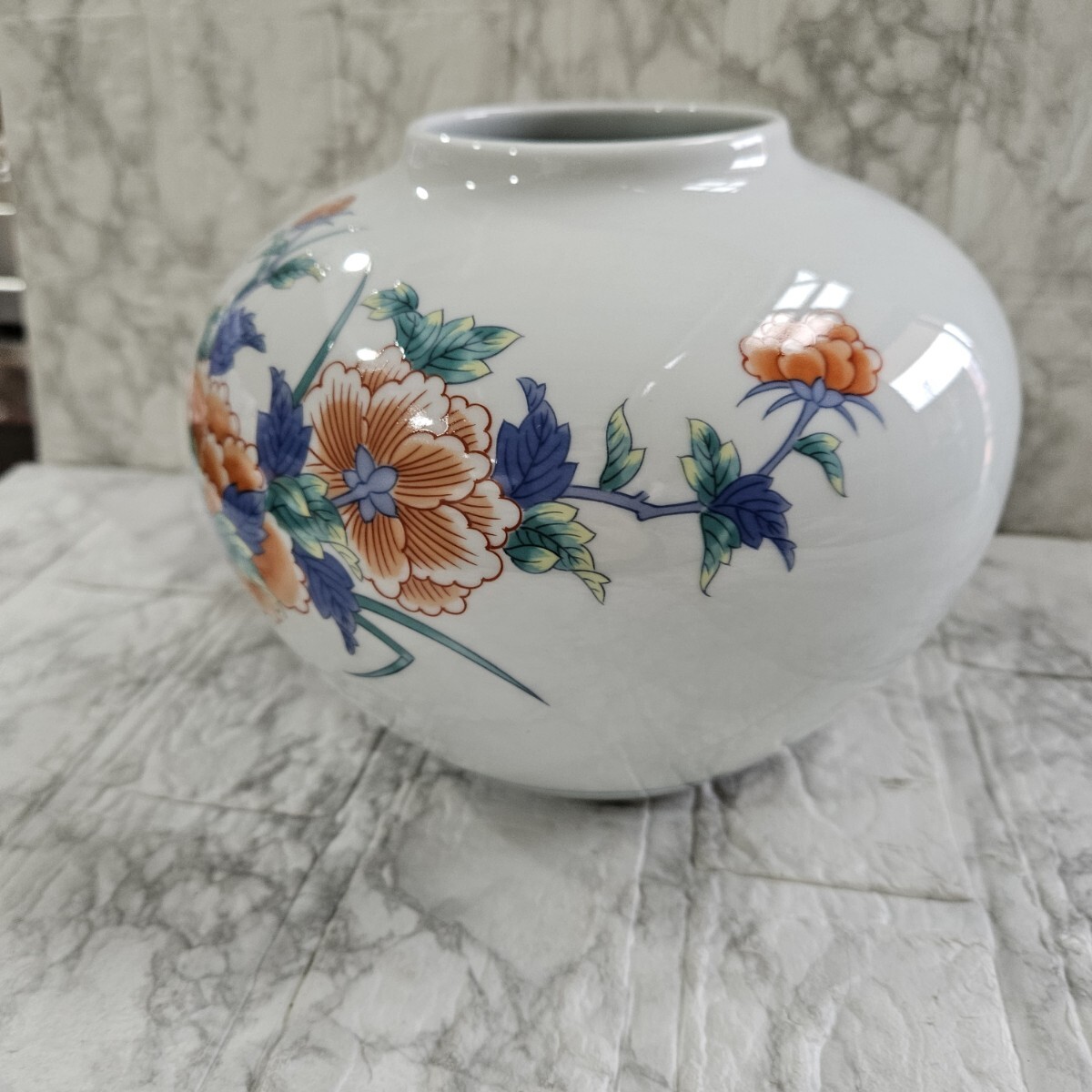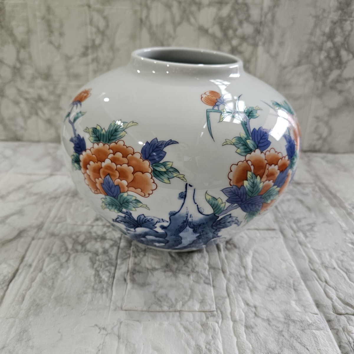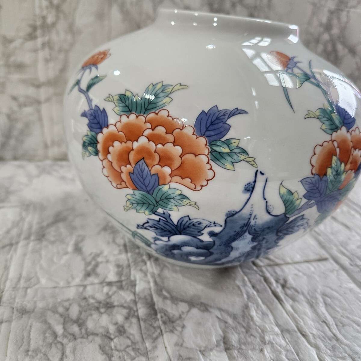 花瓶 色鍋島焼 和泉作 染錦色絵