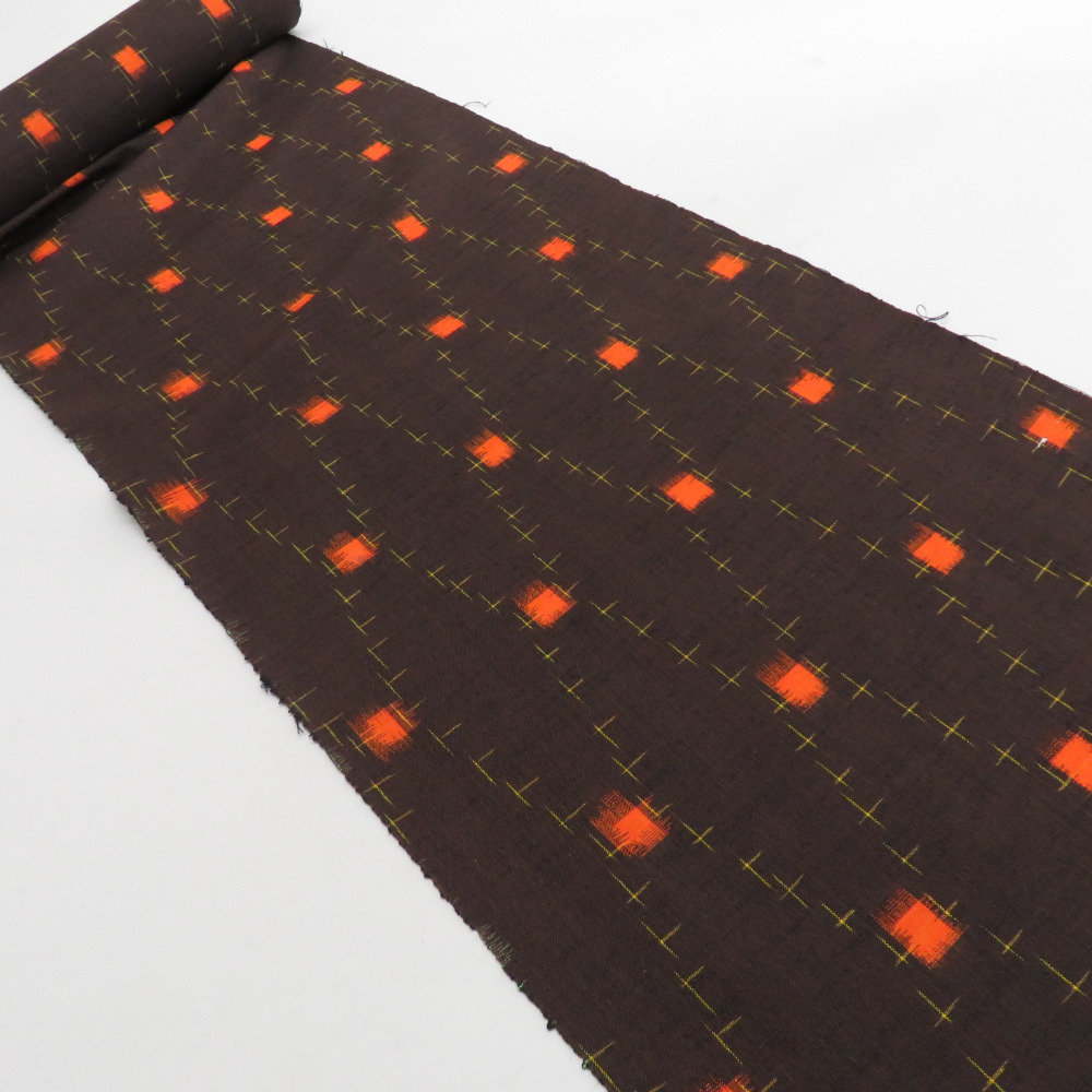 | 反物 着尺 ウール 立涌十字柄 織り文様 茶色 未仕立て 女性着物用 着物生地 ハンドメイド素材 長さ1200cm |
