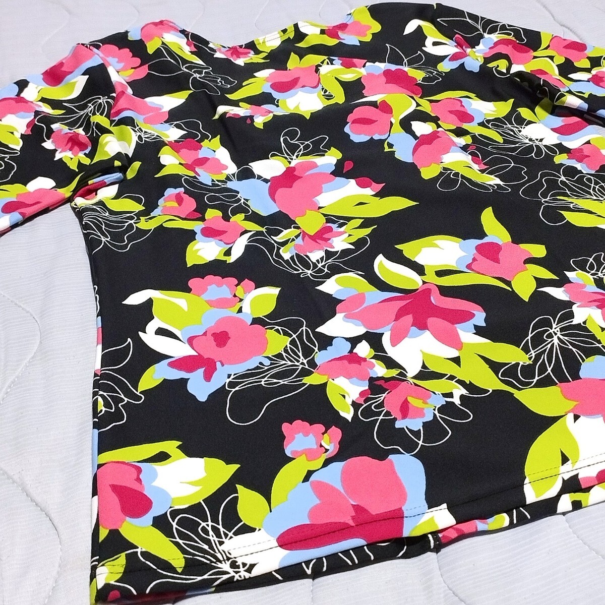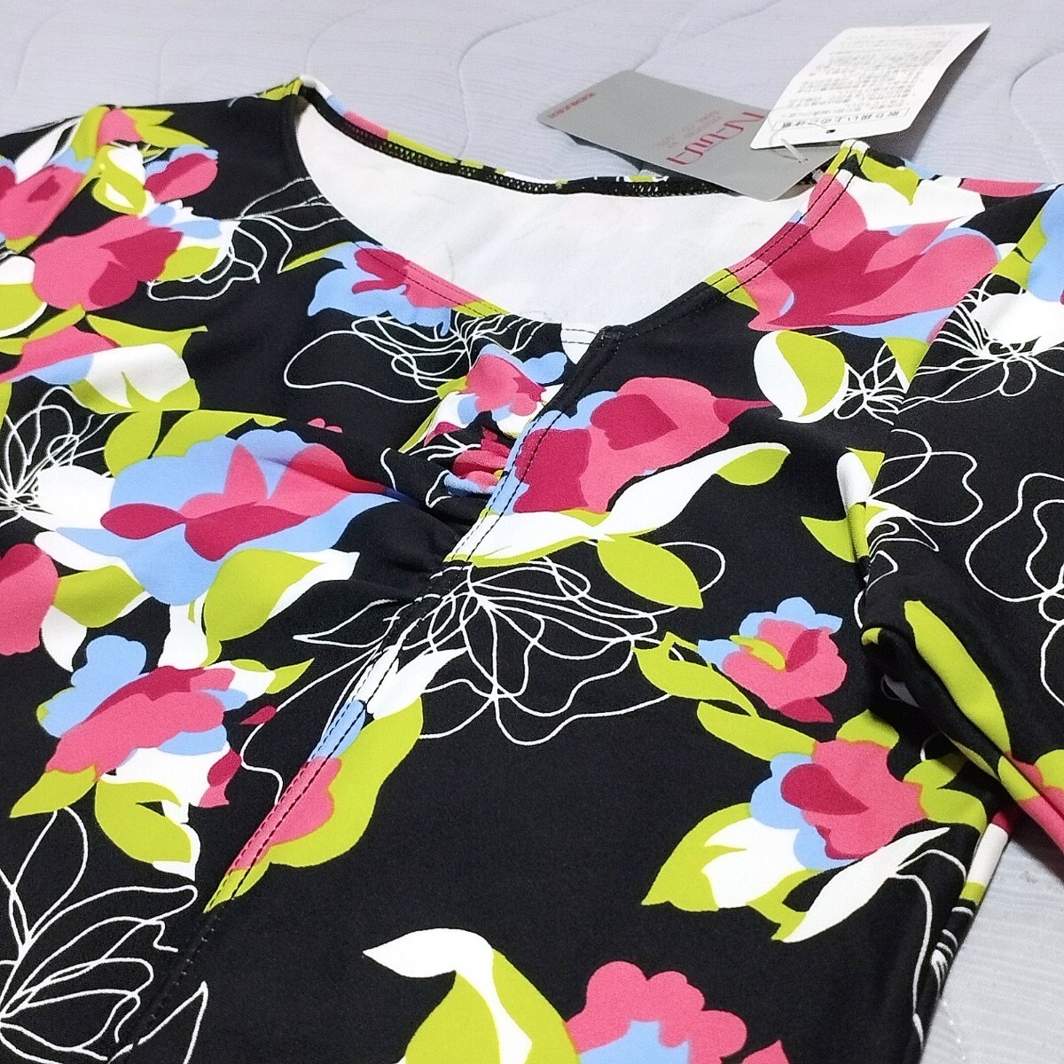 NAWA 名和 ナワ Tシャツ 4部袖カットソー 花柄 黒