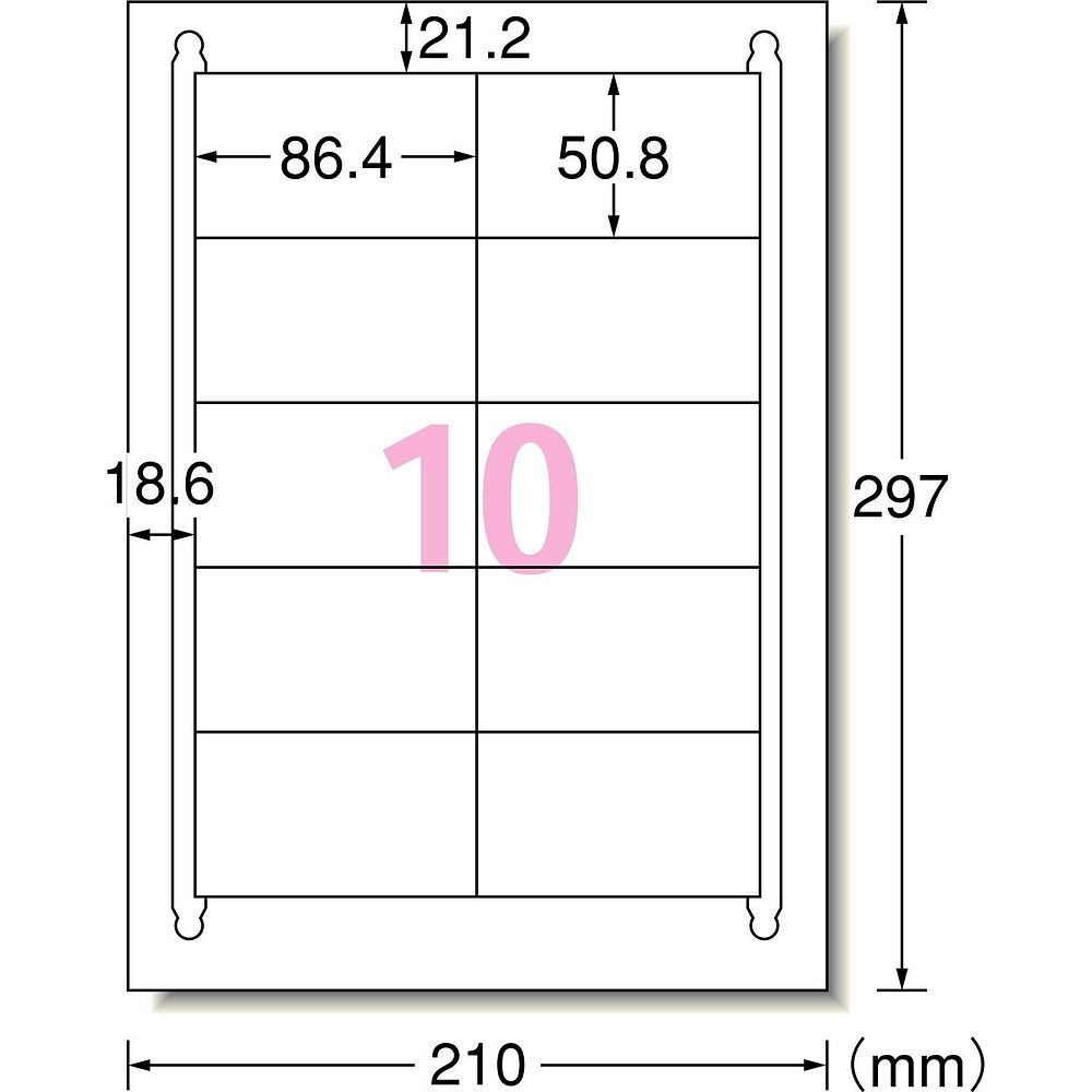 A4判 10面 四辺余白付/シートサイズ:A4判 (210mm×297mm)/ラベルサイズ:86.4mm×50.8mm(2列×5段)