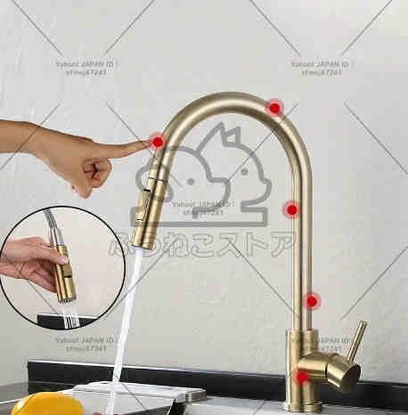 新入荷☆冷熱混合水栓 タッチ自動出水機能 キッチン タッチセンサー ステンレス蛇口 野菜食器シンク 洗面器 引き出し伸縮360°回転