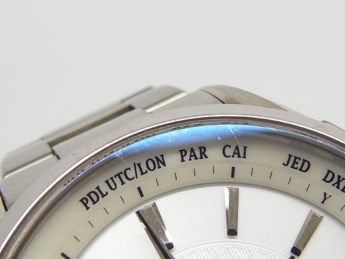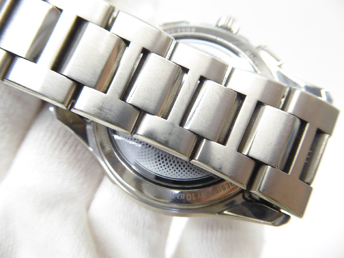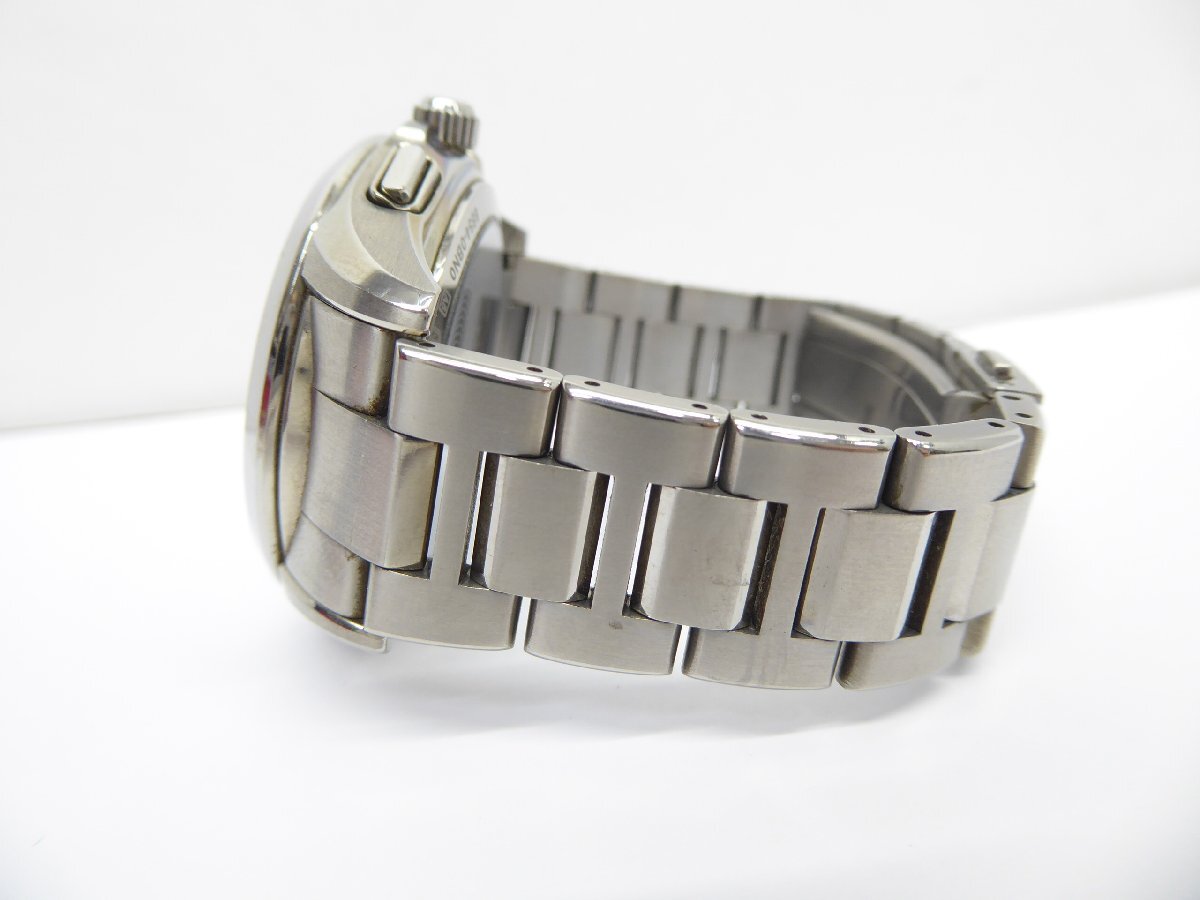 | 【サイズ】 ケース直径(約):3.9cm(リューズ含まず) 腕周り最大(約):15.5cm ※実寸サイズです。素人採寸ですので多少の誤差はご了承下さい。 【状態】 使用感あり 使用に伴う擦れ・傷・イタミあり ベゼルに傷多数あり 風防に小さな傷若干あり 大きなダメージは無くまだまだご使用いただけます。 ※写真では見えずらい汚れ、破れ等の見落としがある場合がございます。ご理解、ご了承の上、御確認し、ご検討下さい。 ※撮影の関係上、色合いが実物と若干異なる場合がございますが、あらかじめご了承下さい。 | |||||||