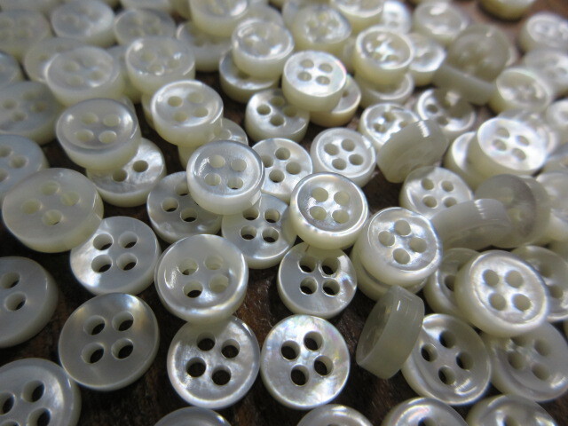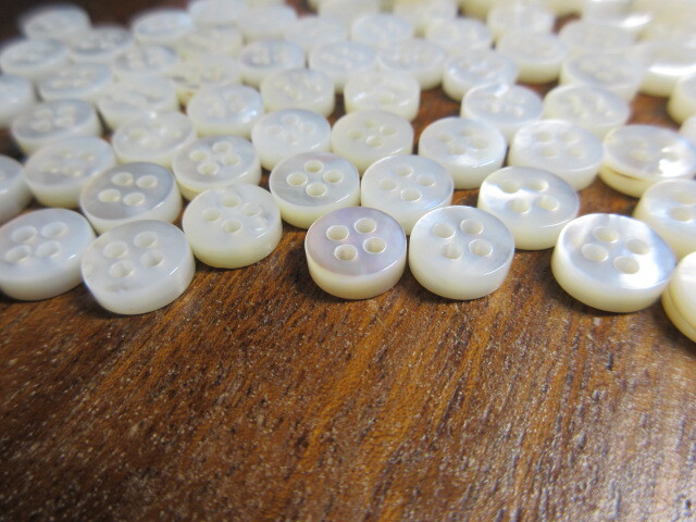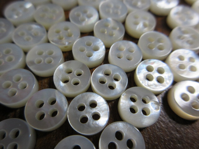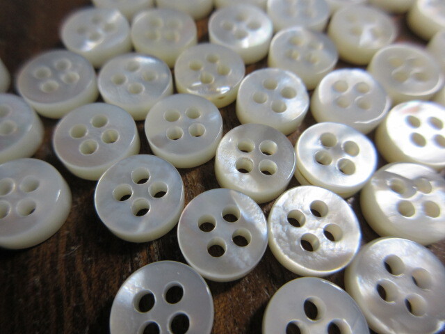 白蝶貝と見分けがつかないくらい白い綺麗なボタンです。