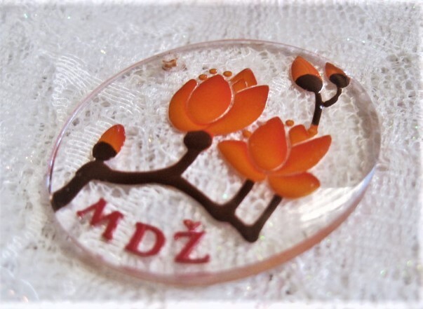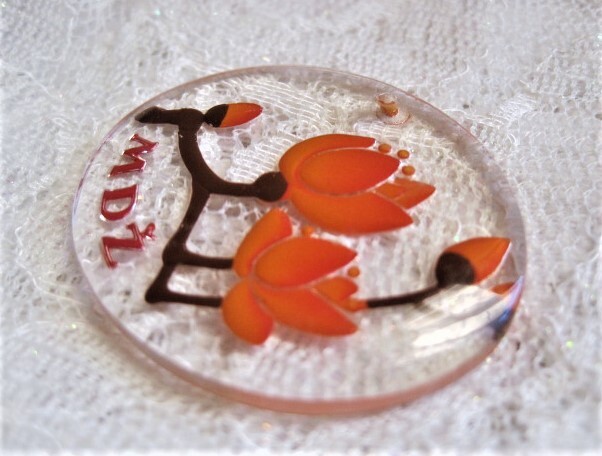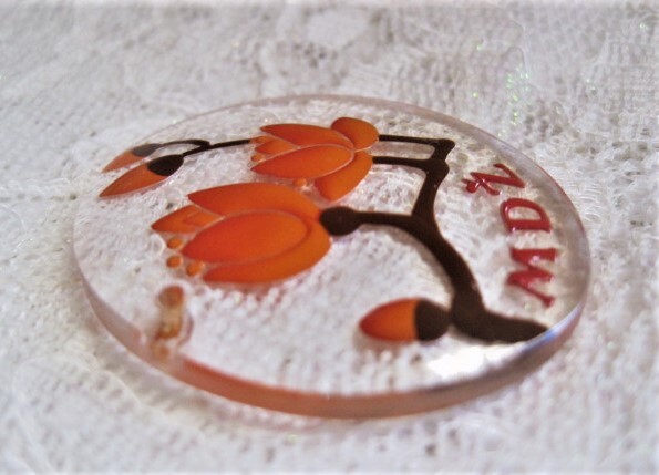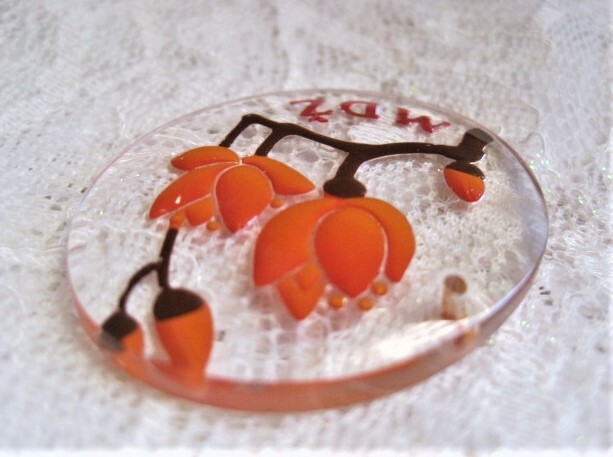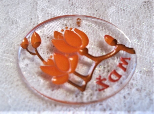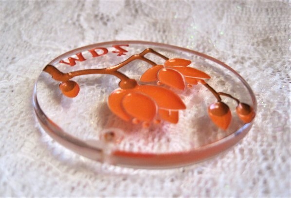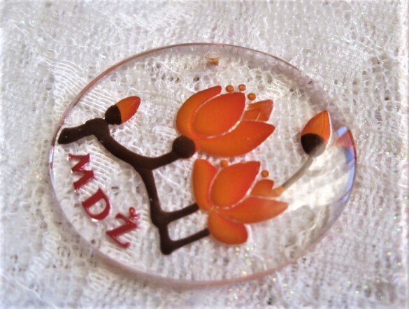 ★チェコ■木蓮モクレン オレンジ系 彫刻 裏彩色 オーバル クリスタルガラスペンダントトップ&チャーム #430 アクセサリー ヴィンテージ