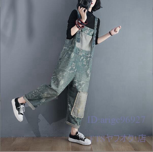 V687☆新品サロペット レディース デニムパンツ デニムサロペット つなぎ オールインワン 花柄 ビンテージ加工 M~2XL
